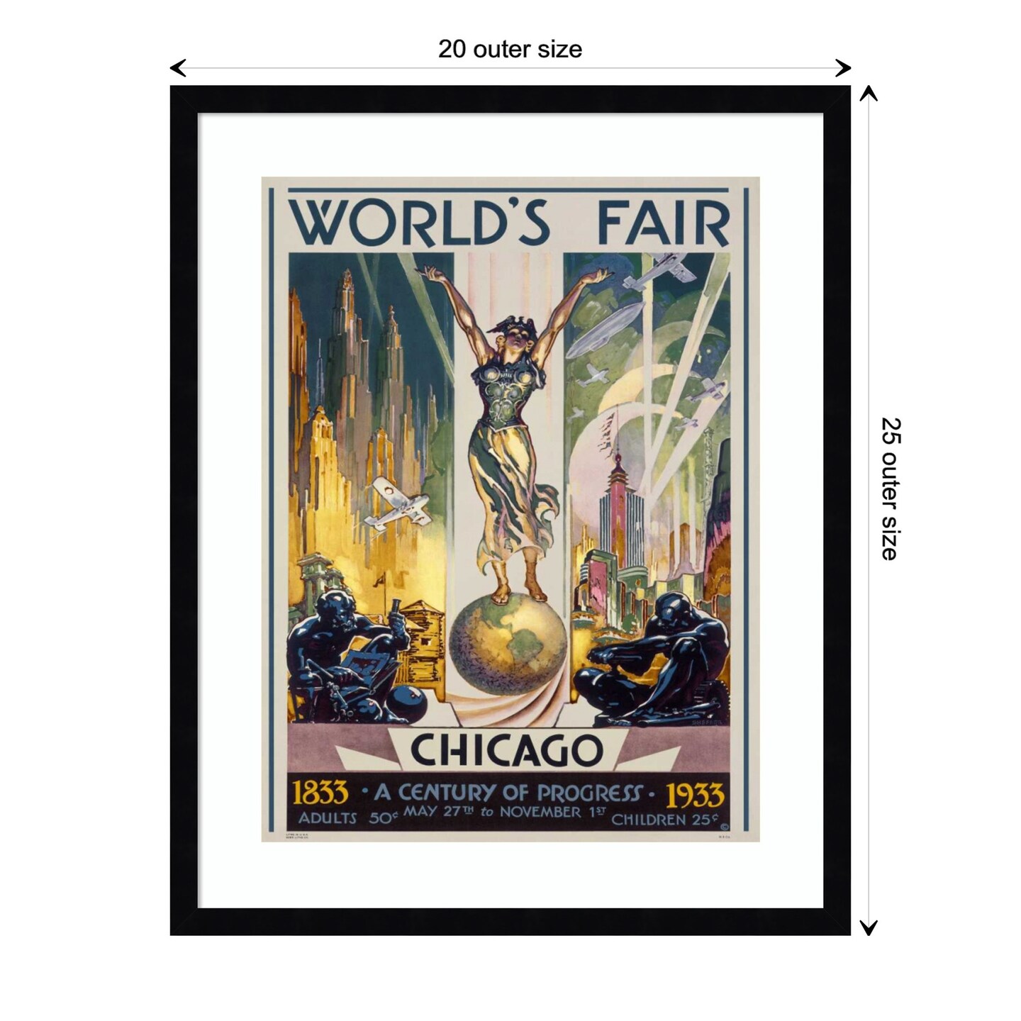 Chicago Worlds Fair 1933 by Glen C. Sheffer Wood Framed Wall Art Print