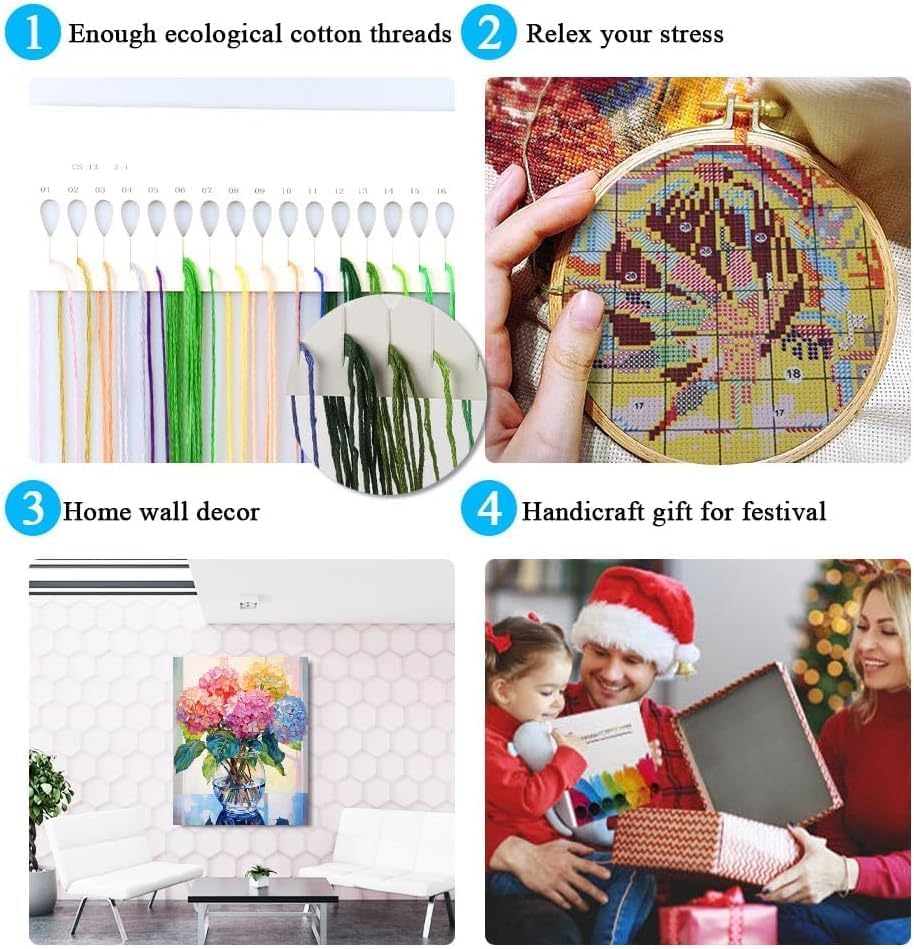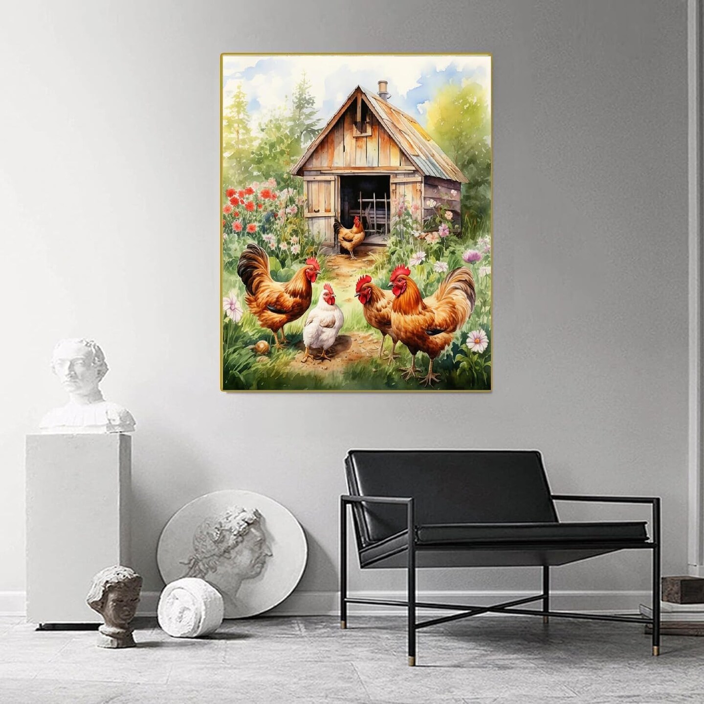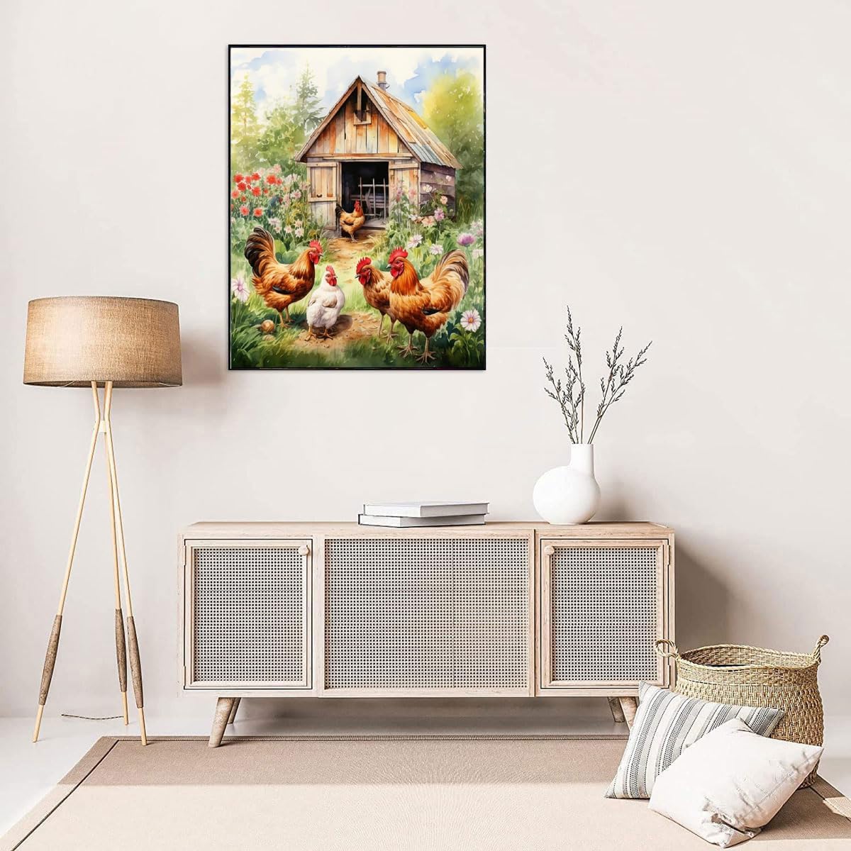 Chicken Cross Stitch Kit for Adults – Stamped Embroidery Starter Kit, 12×16 Inch DIY Animal Pattern, Easy and Fun for Beginners