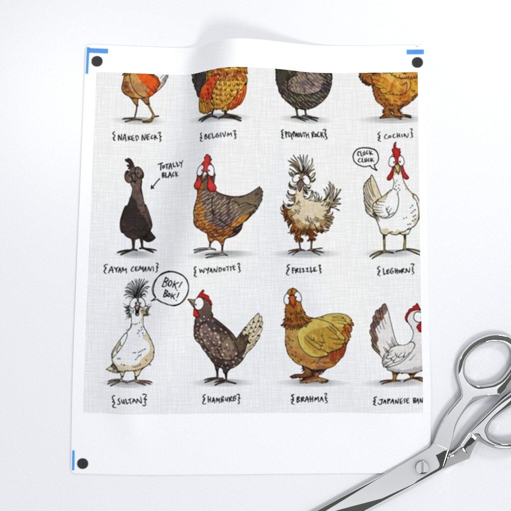 Chickens World Chicken Illustration Cute Rooster Modern Farmhouse Farm Animal Shabby Chic Kitchen Livestock Custom Printed Fabric by Spoonflower Various Fabrics by the Yard or Fat Quarter