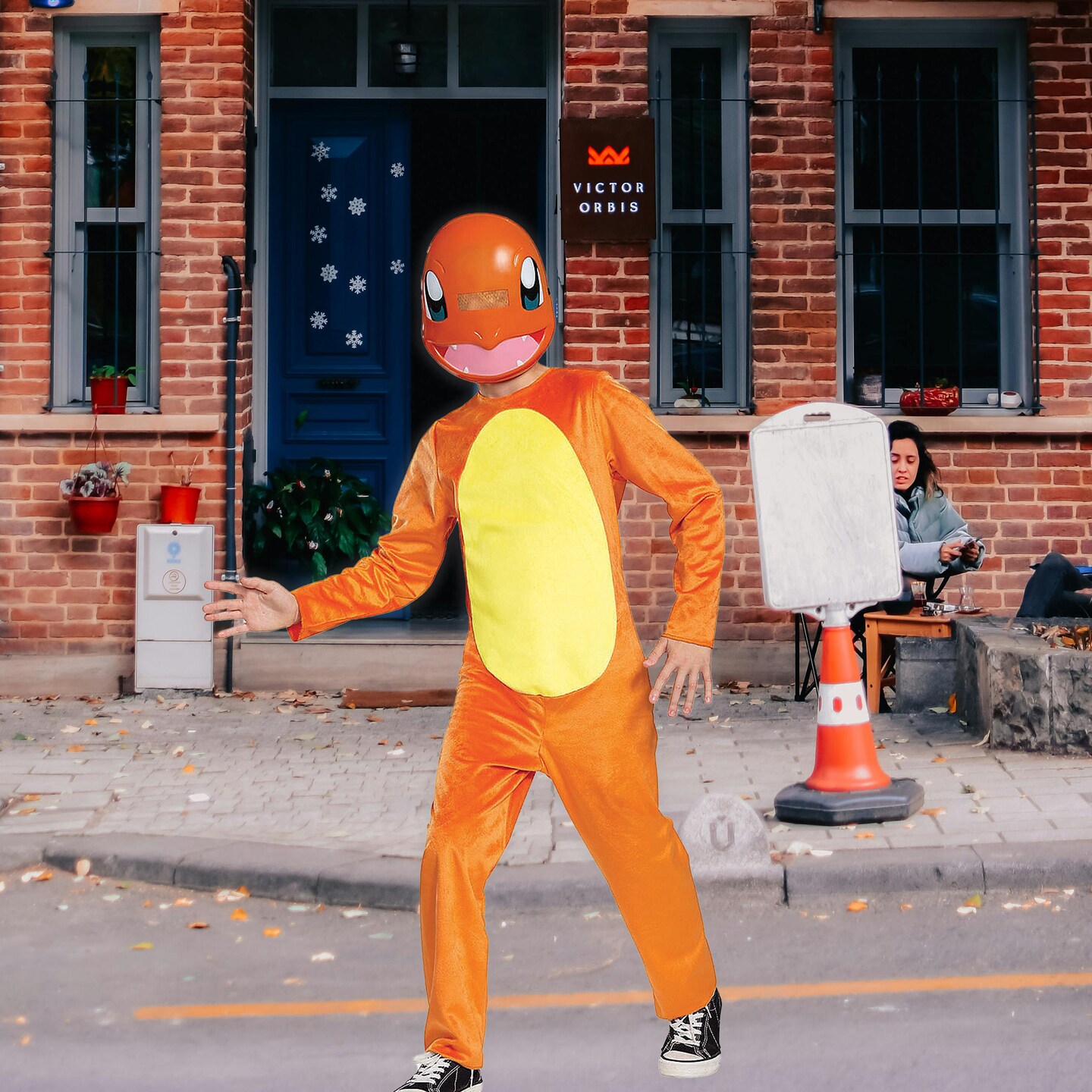 Child Charmander Costume Jumpsuit with Flame Tail and Half Mask