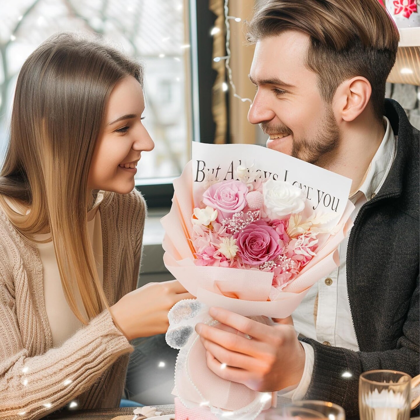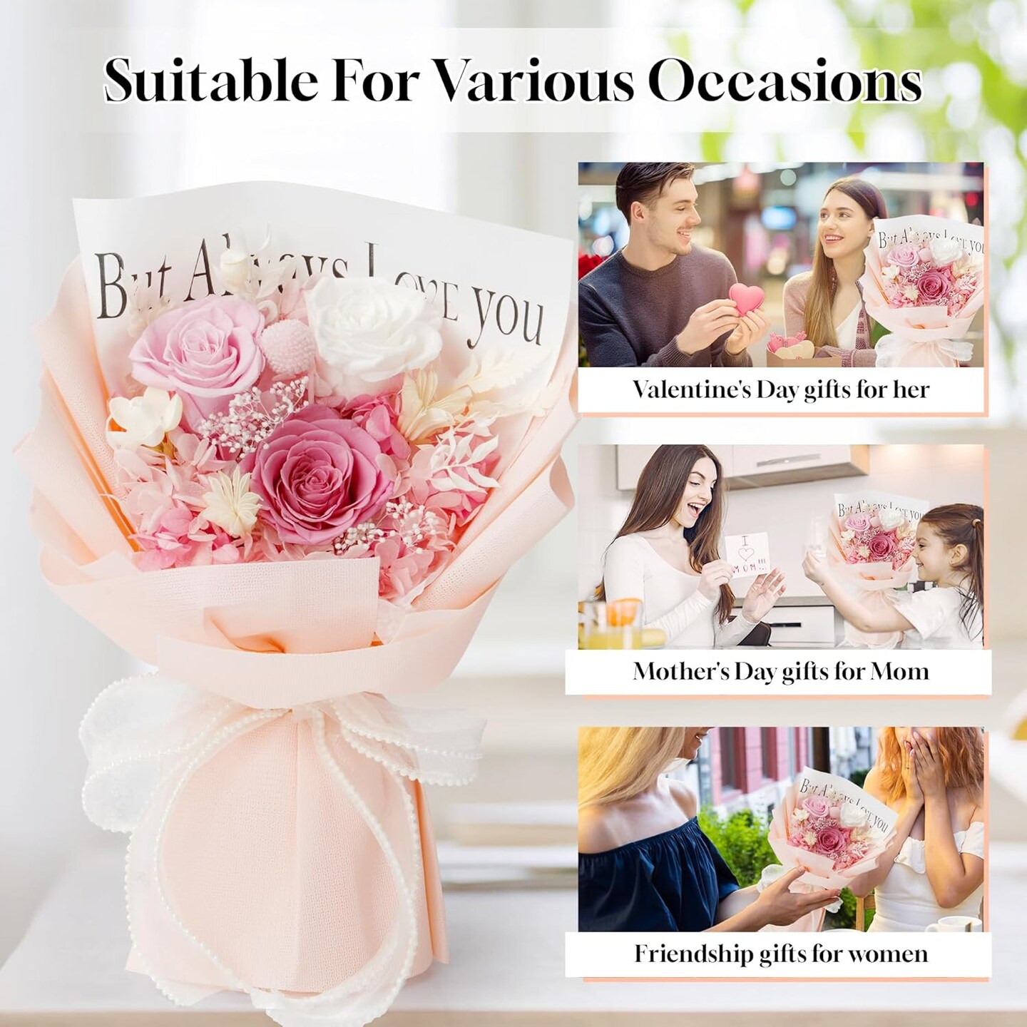 Childom Pink Preserved Roses Bouquet, Long-Lasting Gift