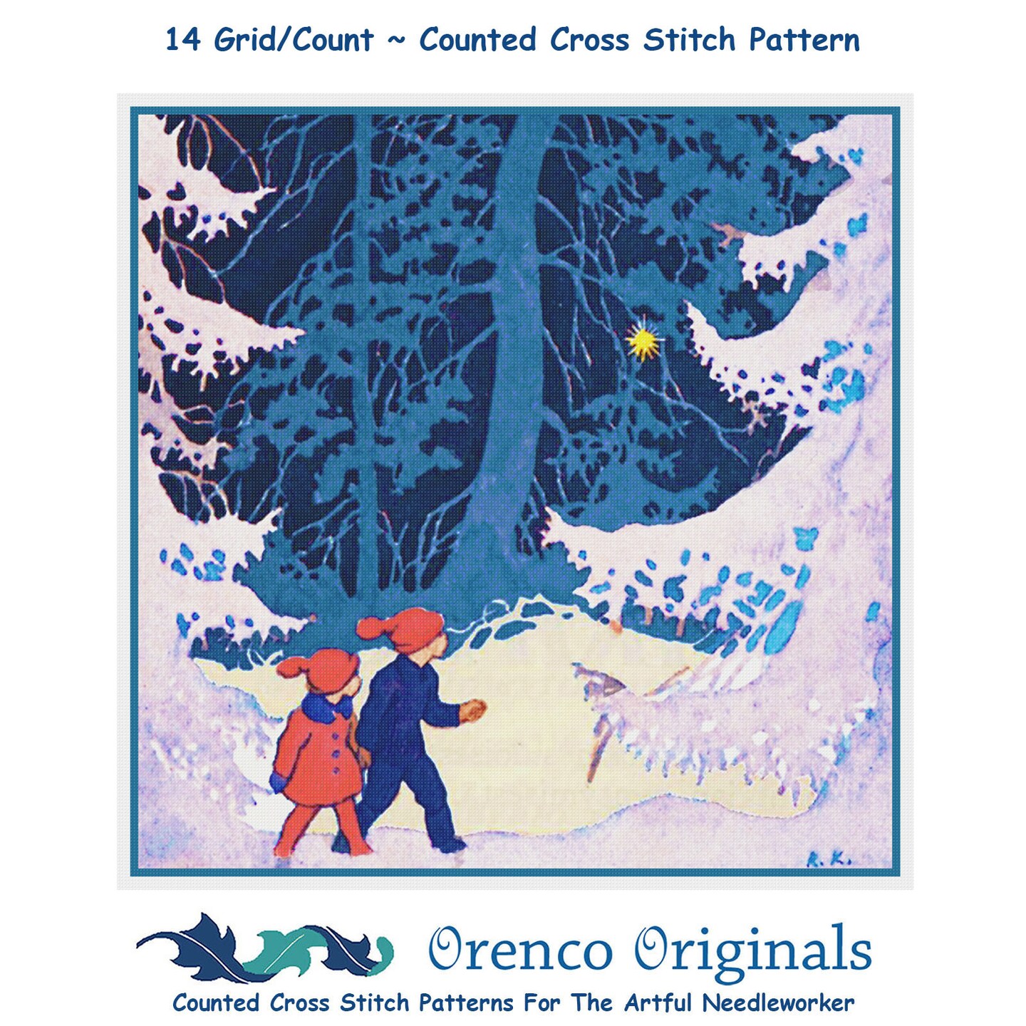 Children Snowy Evening by Rudolf Koivu Counted Cross Stitch Pattern