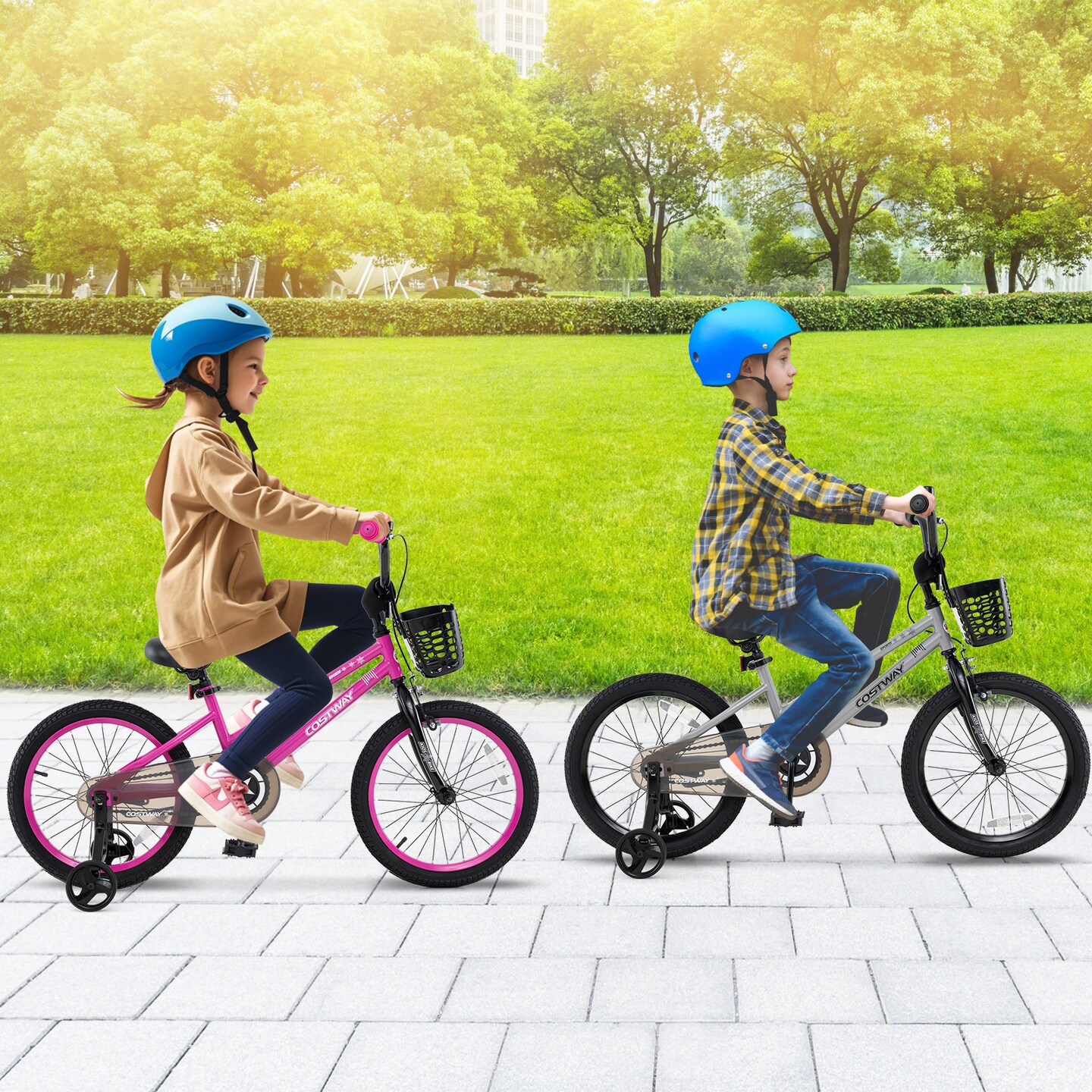 Children’s Bike with Training Wheels and Enclosed Chain Guard, Hand Brake Basket Reflectors
