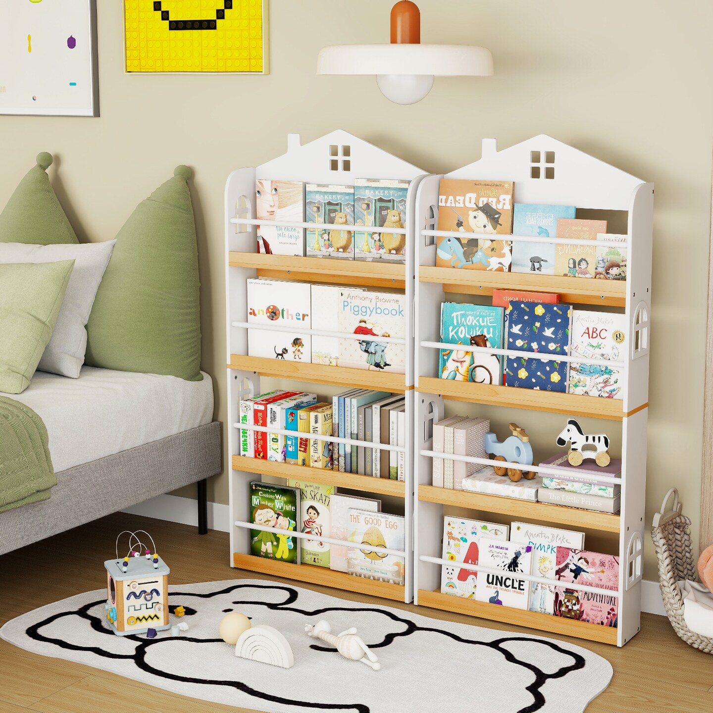 Children’s House-Shaped Bookshelf with Safety Anti-Falling Panels