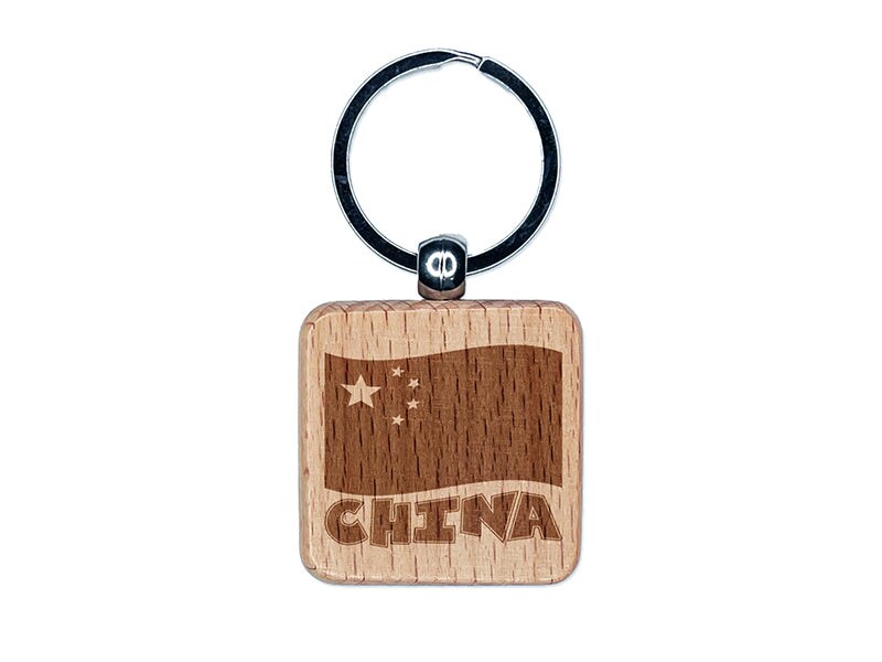 China with Waving Flag Cute Engraved Wood Square Keychain Tag Charm