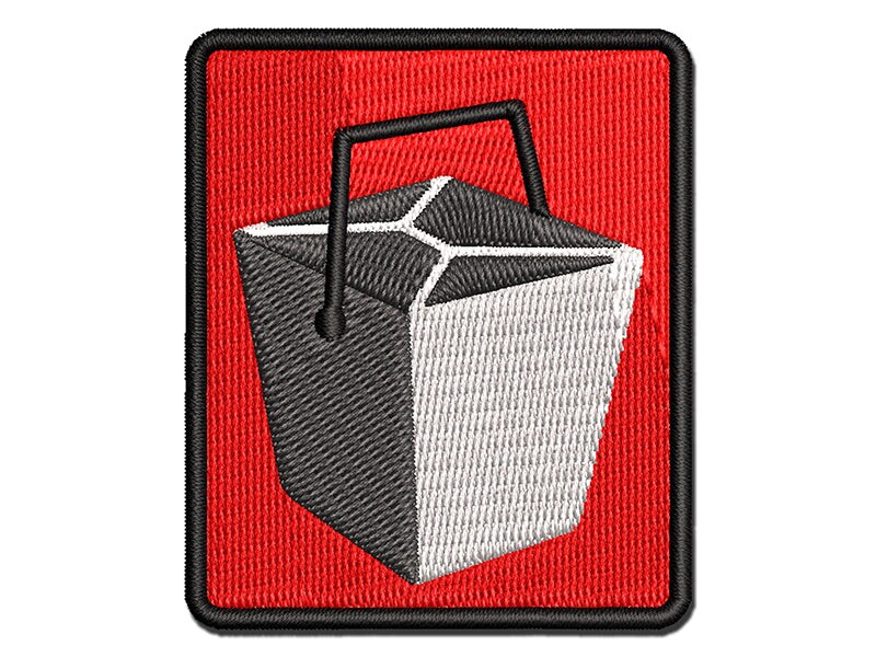 Chinese Food Take Out Box Closed Multi-Color Embroidered Iron-On or Hook & Loop Patch Applique