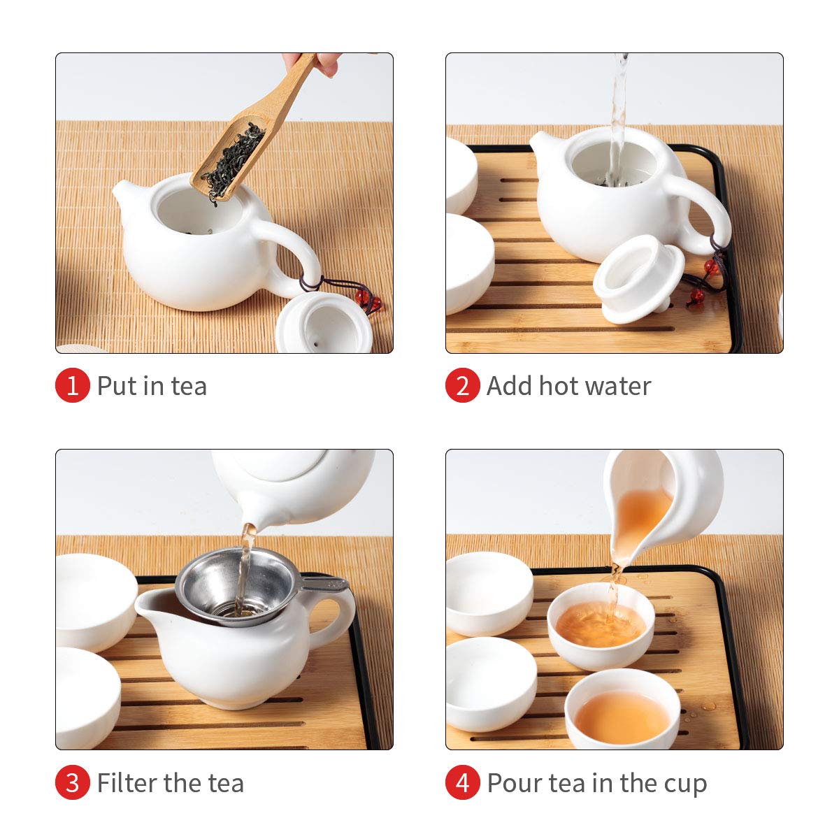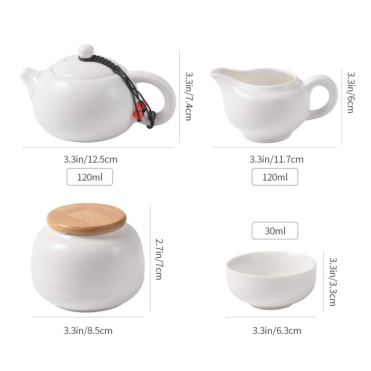 Chinese Tea Pot Cup Set with Tray Infuser - Travel Ceramic Tea set Porcelain Teapot, Portable All in One Bag for Outdoor Picnic Business Hotel (White)