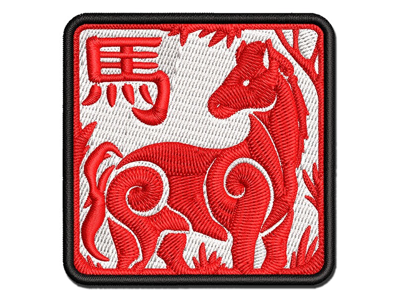 Chinese Zodiac Horse Multi-Color Embroidered Iron-On or Hook & Loop Patch Applique