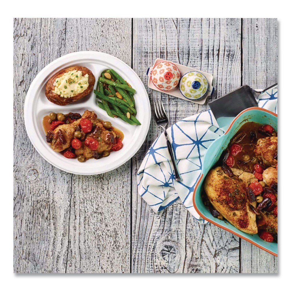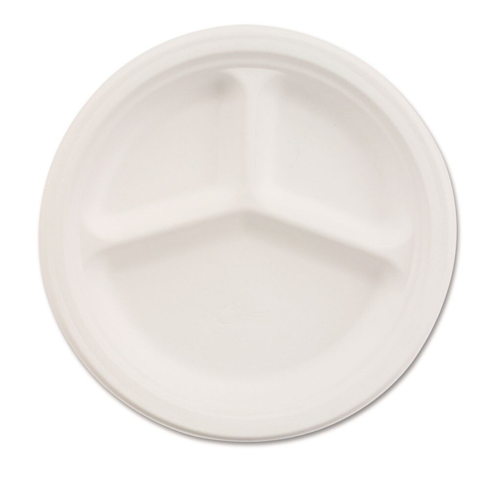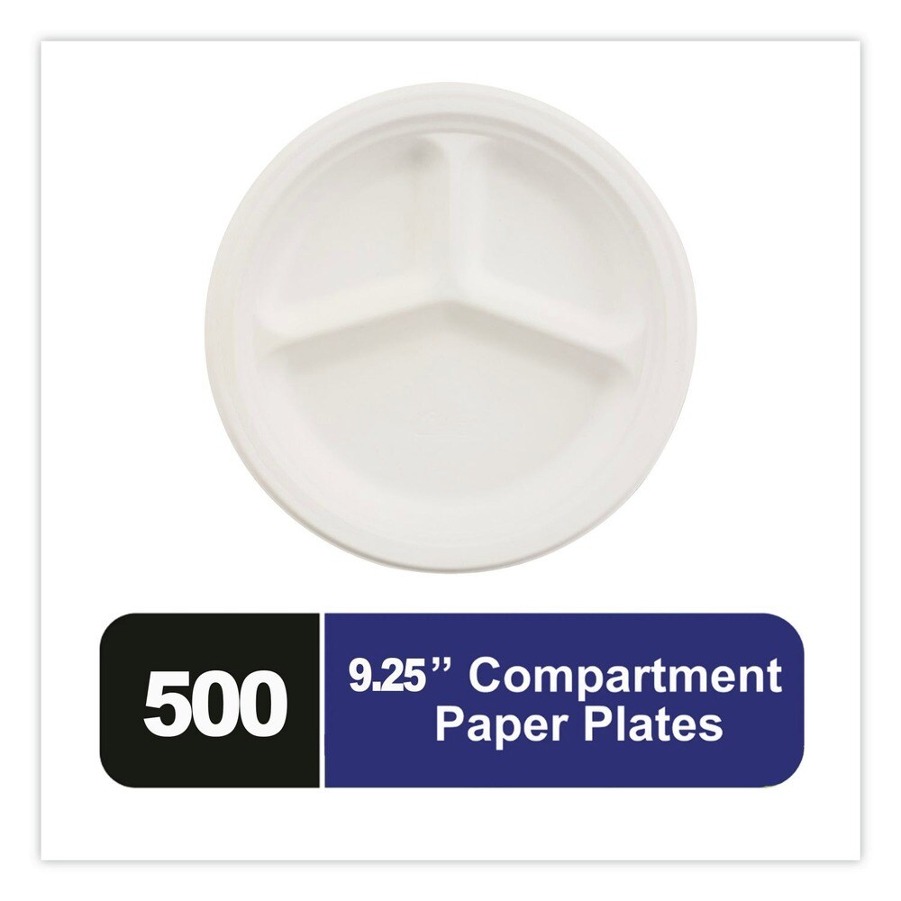 Chinet 9.25 in. Dia 3-Compartment Paper Plate - White (500/Carton)