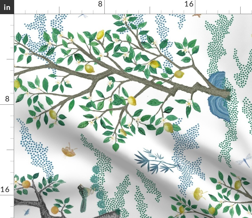 Chinoiserie Floral Branches Citrus Large Scale Oranges Lemons Toile Grove Botanical Tree Fruit Rotated Custom Printed Fabric by Spoonflower Various Fabrics by the Yard or Fat Quarter