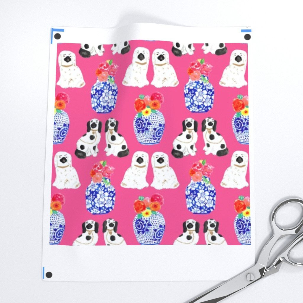 Chinoiserie Preppy Floral Dogs Southern Vases Watercolor Ginger Jars Custom Printed Fabric by Spoonflower Various Fabrics by the Yard or Fat Quarter