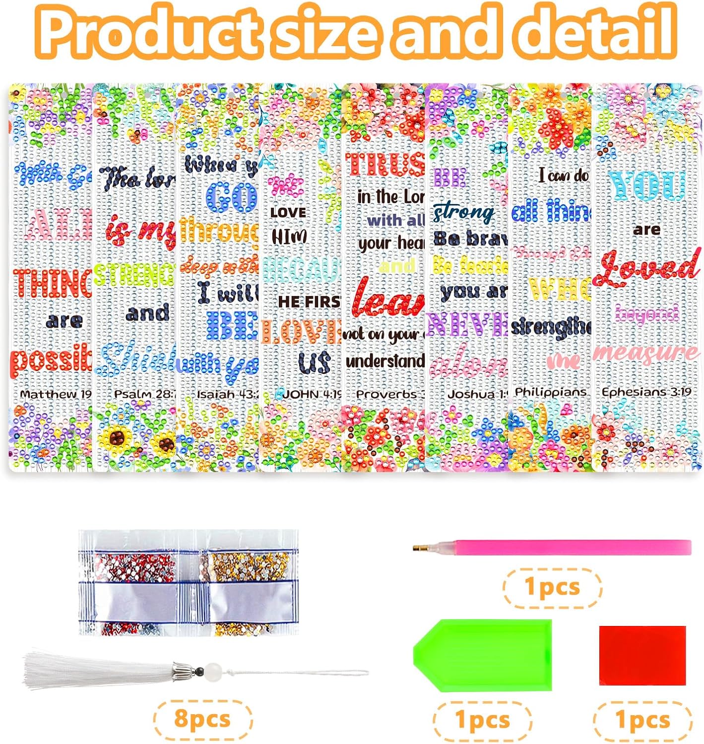 Christian Bible Verse 8PCS Diamond Painting Bookmarks Kits 5D