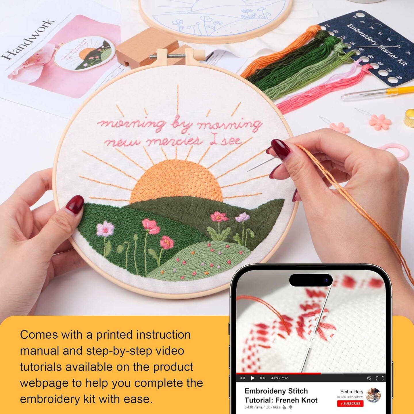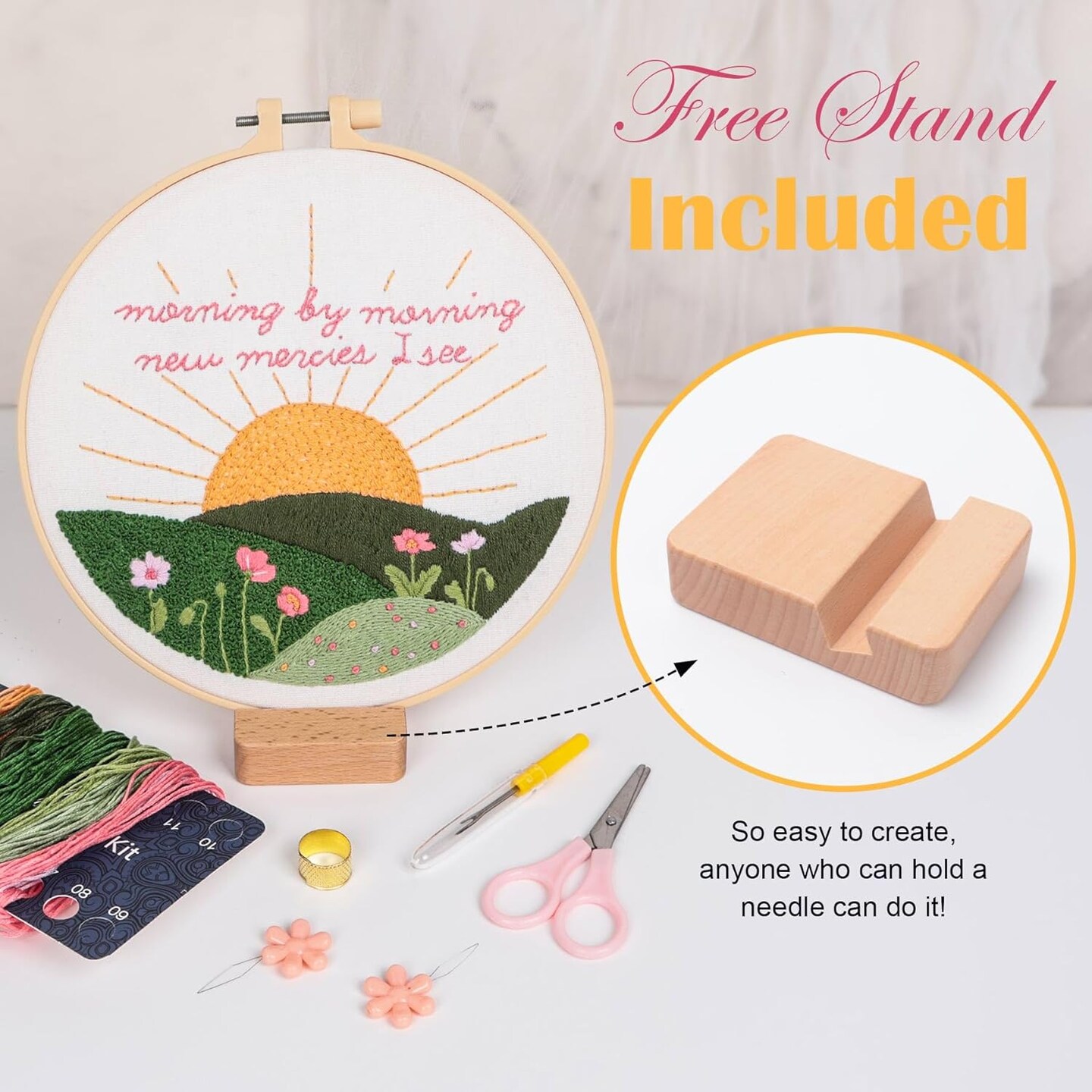 Christian Embroidery Kit for Beginners – New Morning Mercies Full Hoop Set with Needles, Threads & Instructions, Easy DIY Craft for Adults