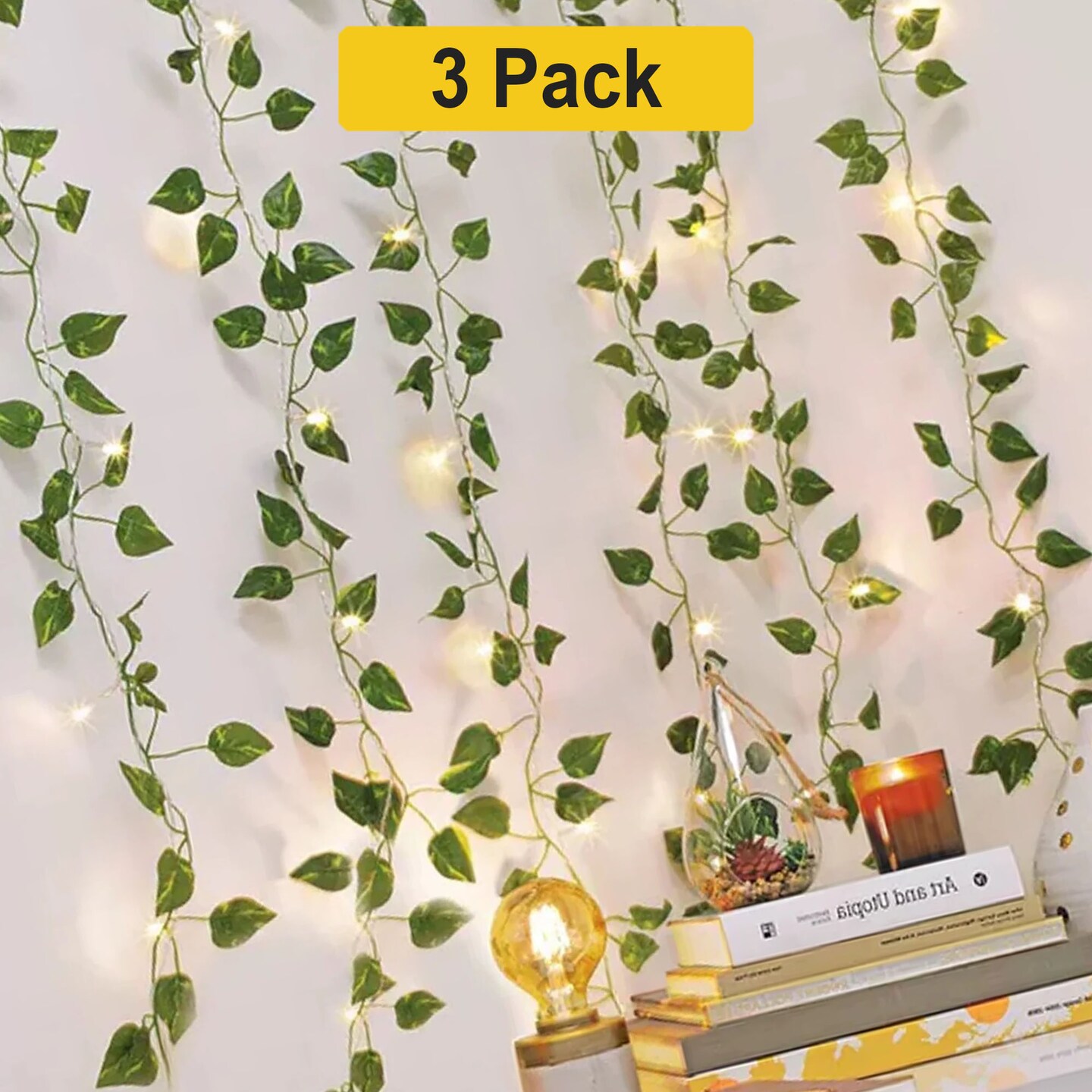Christmas 66 LED Ivy Leaf Curtain String Lights Battery Operated