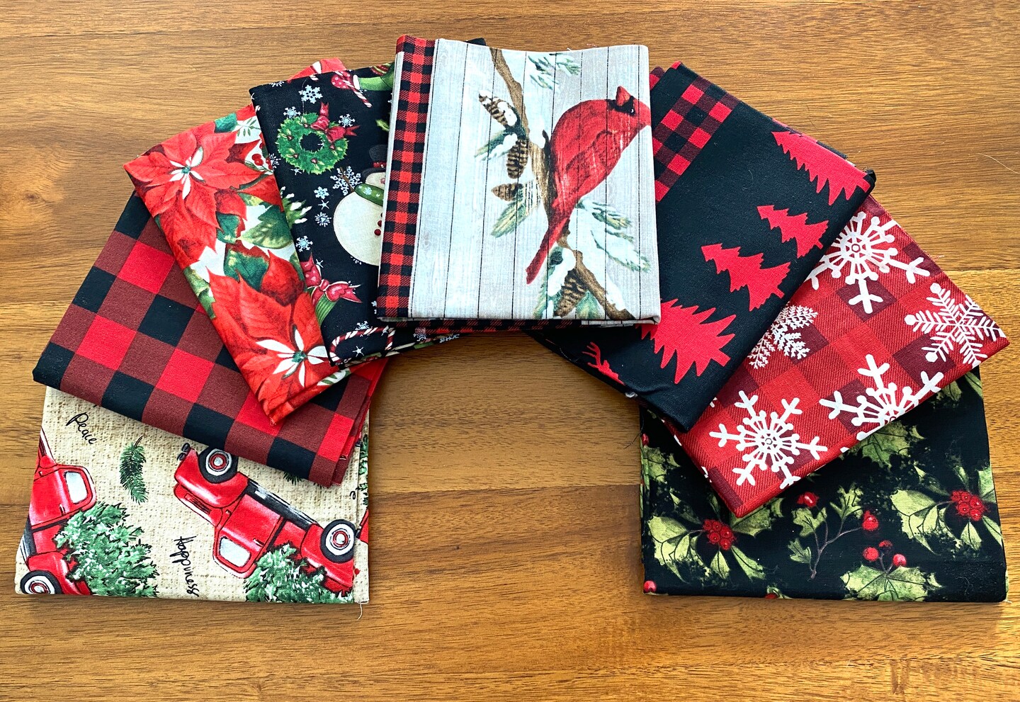 Christmas 8-piece Cotton Fabric Fat Quarter Bundle | Sewing | Crafting | Quilting
