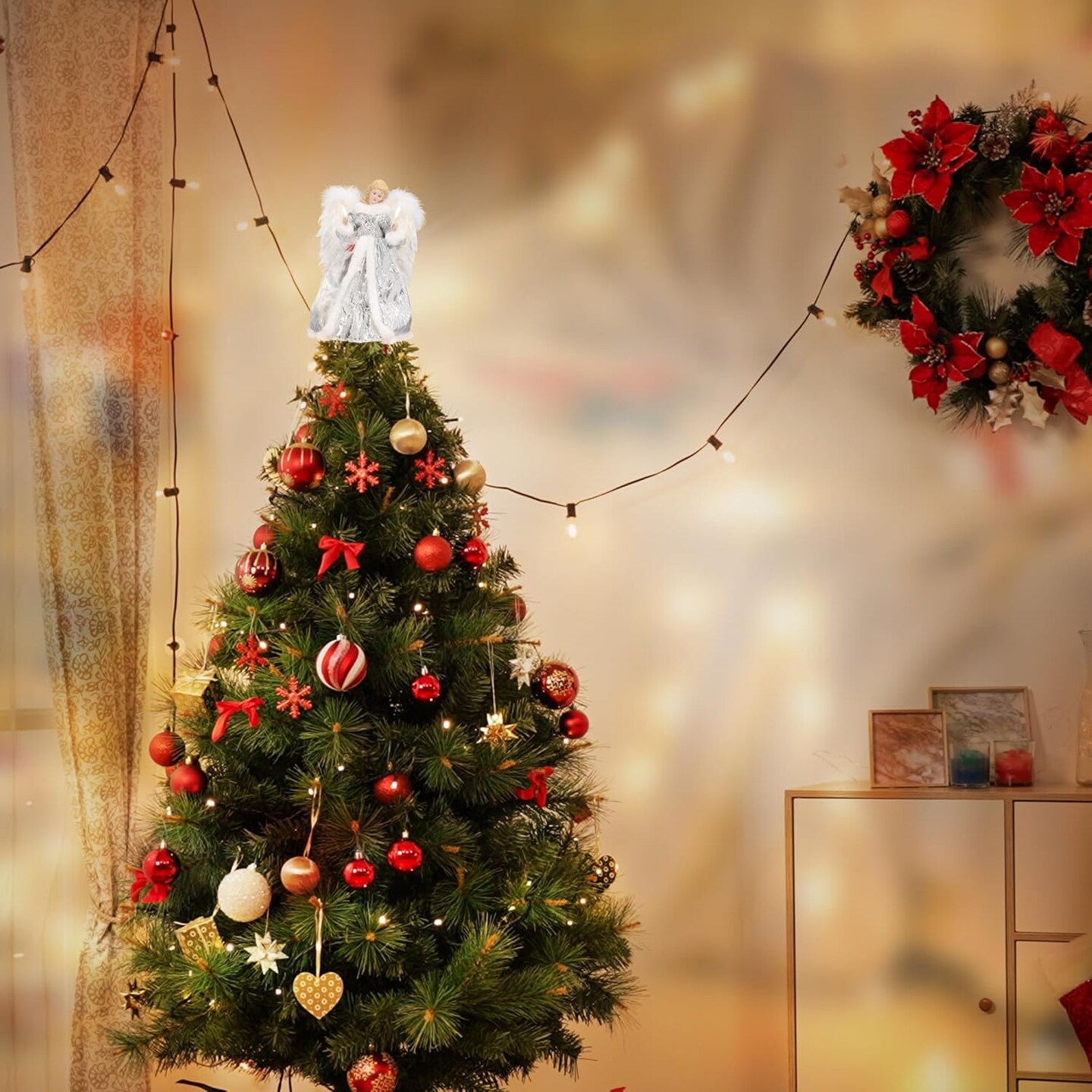 Christmas Angel Tree Topper Decoration - 12 Inch (Silver)