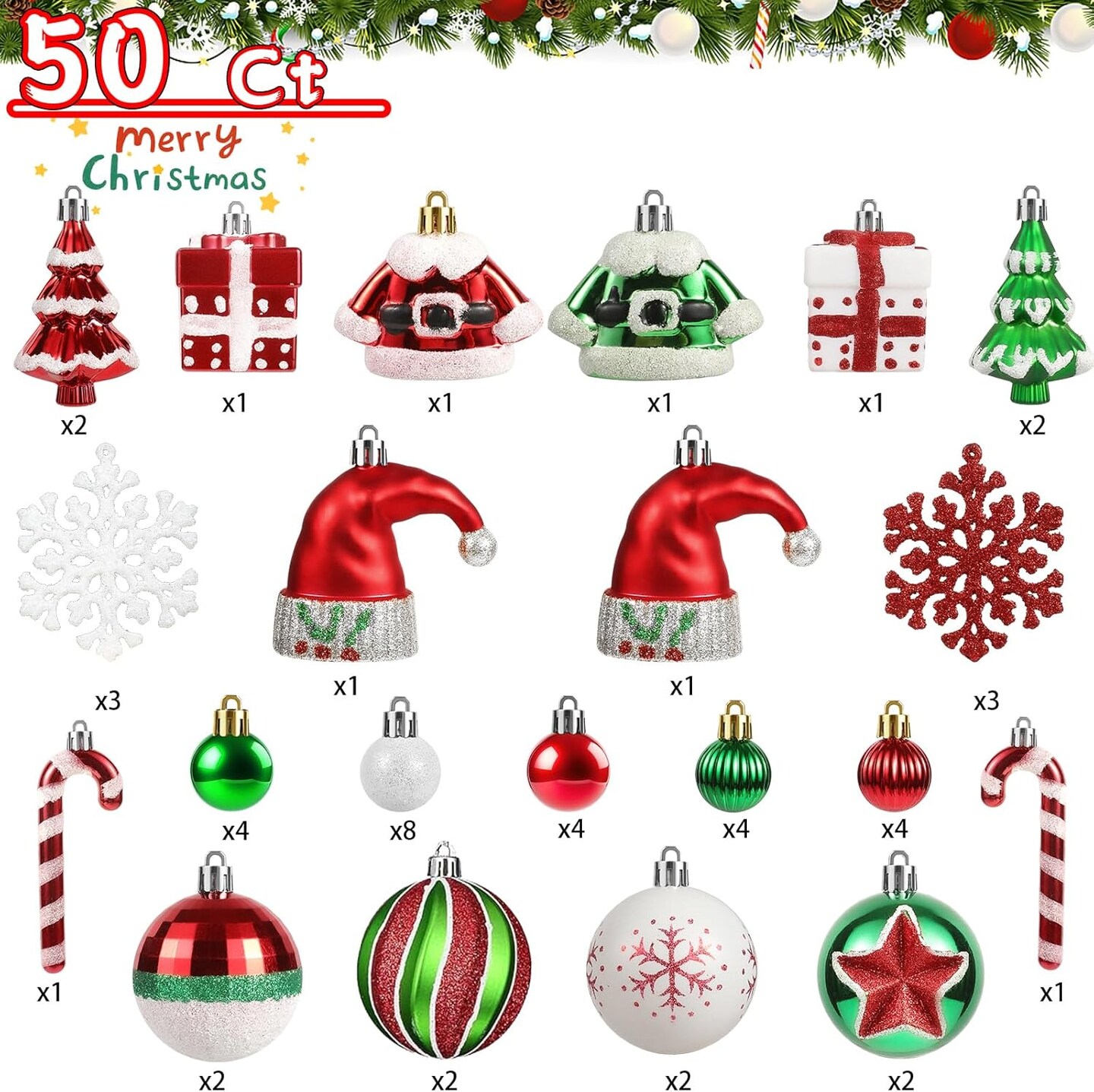 Christmas Ball Ornaments Set 50 ct