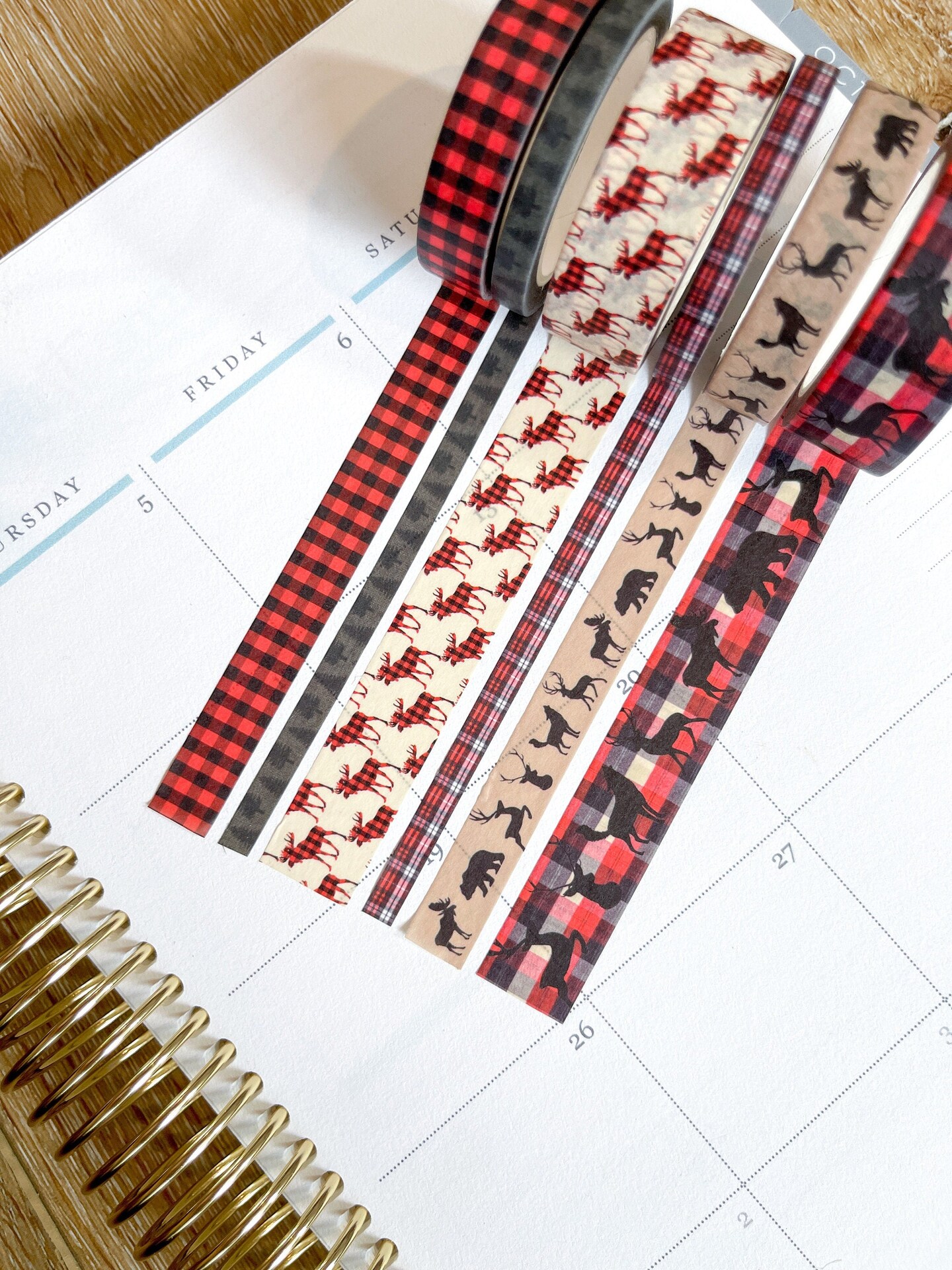 Christmas Buffalo Plaid Deer Holiday Red & Black Washi Tape Set (#W038)