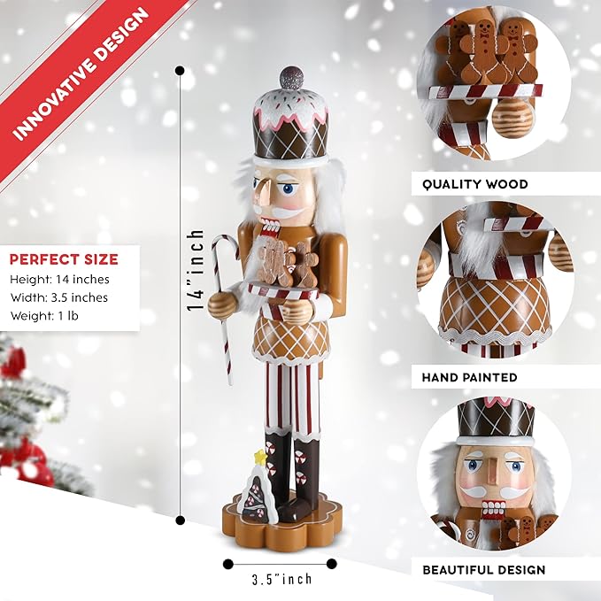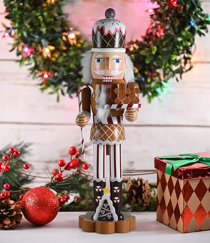 Christmas Candyland Gingerbread Nutcracker – Wooden Nutcracker Candy Man with Candy Cane and Gingerbread Cookies in Hand Xmas Themed Holiday Nut Cracker Doll Figure Decorations