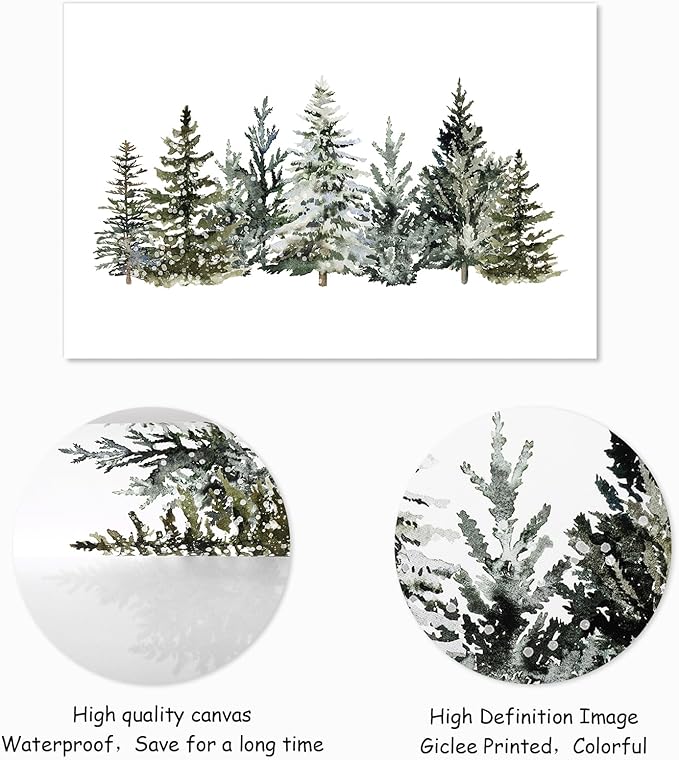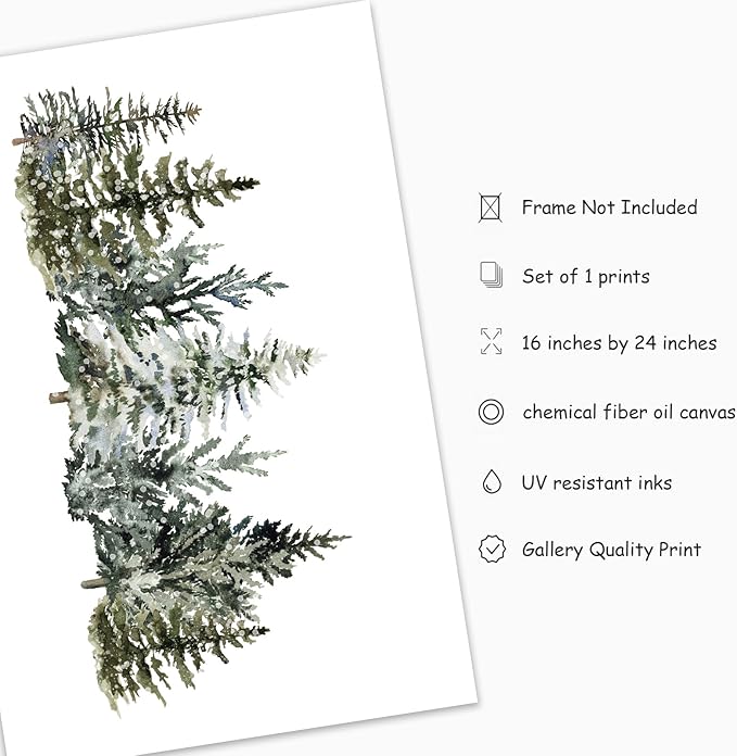 Christmas Canvas Wall Art Prints Watercolor Snowy Pine Trees Art Poster Winter Xmas Forest Wall Decor for Gallery Living Room Bedroom (UNFRAMED 16 x 24in)