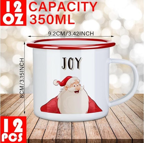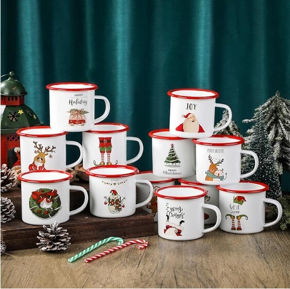 Christmas Coffee Mugs Set of 12 Enamel Mugs 12 oz Christmas Holiday Coffee Cups Outdoor Camping Mug Cup Gifts for Friends Kitchen Decoration (Classic Style) Merry Christmas