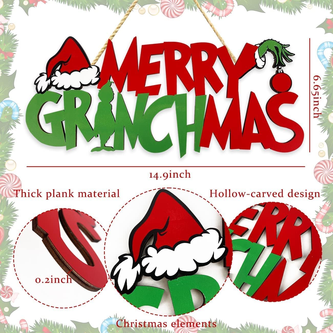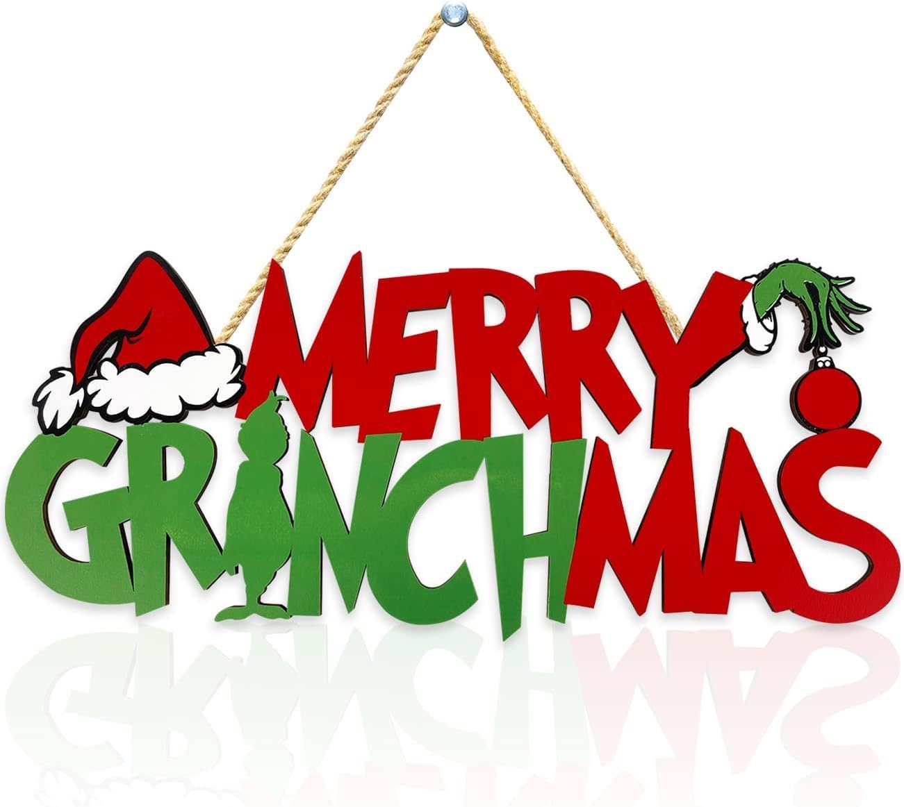 Christmas Decorations Merry Greenchmas Wooden Door Hanging Sign Merry Christmas Sign Photo Props for Indoor Outdoor Wall Decor Christmas Tree Ornaments Xmas Party Supplies