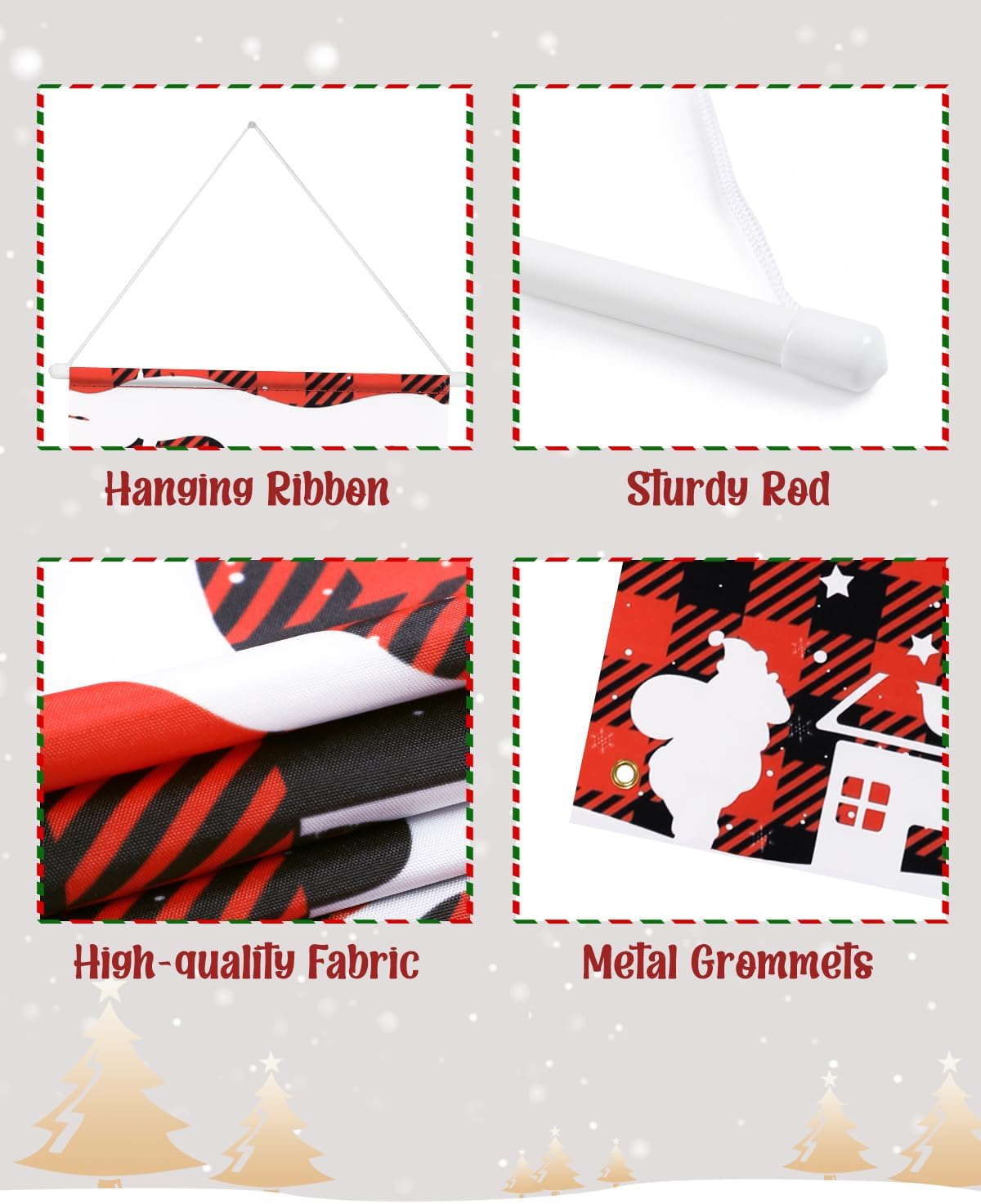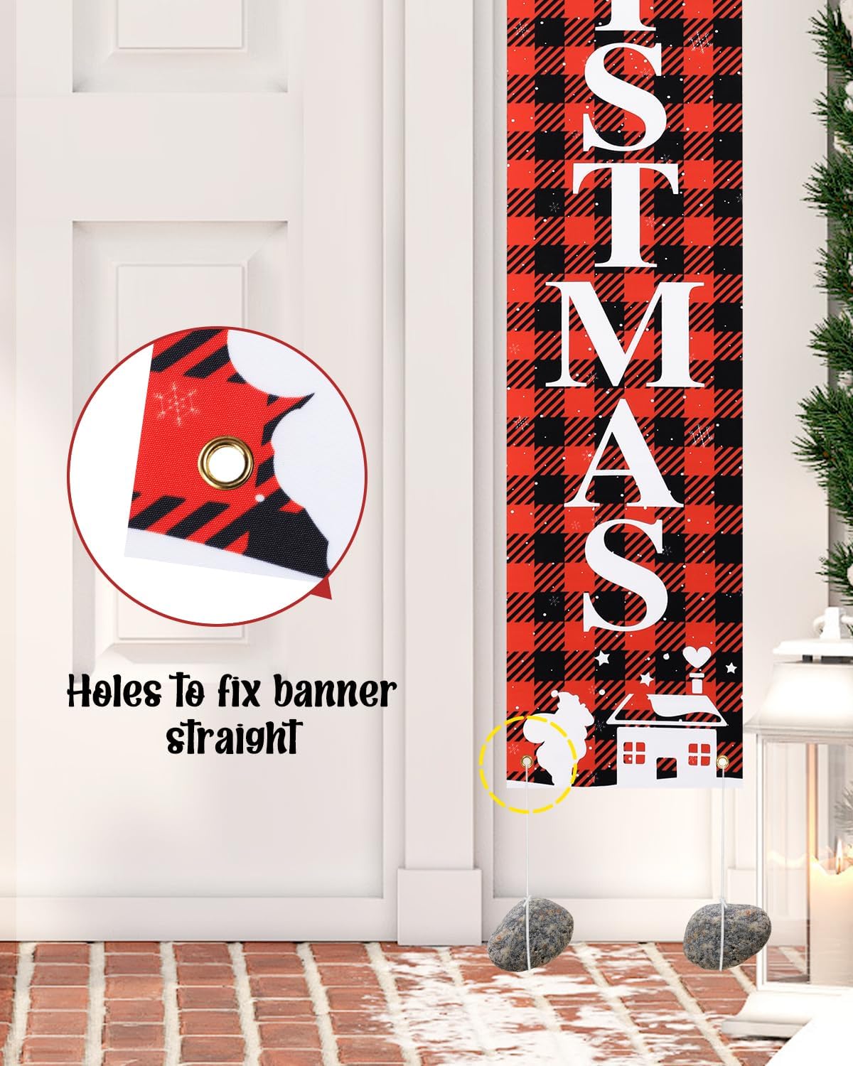 Christmas Decorations Outdoor Yard Front Porch Sign Set, Red Plaid Door Banner(Christmas Tree)13.5"L x 5.3"W