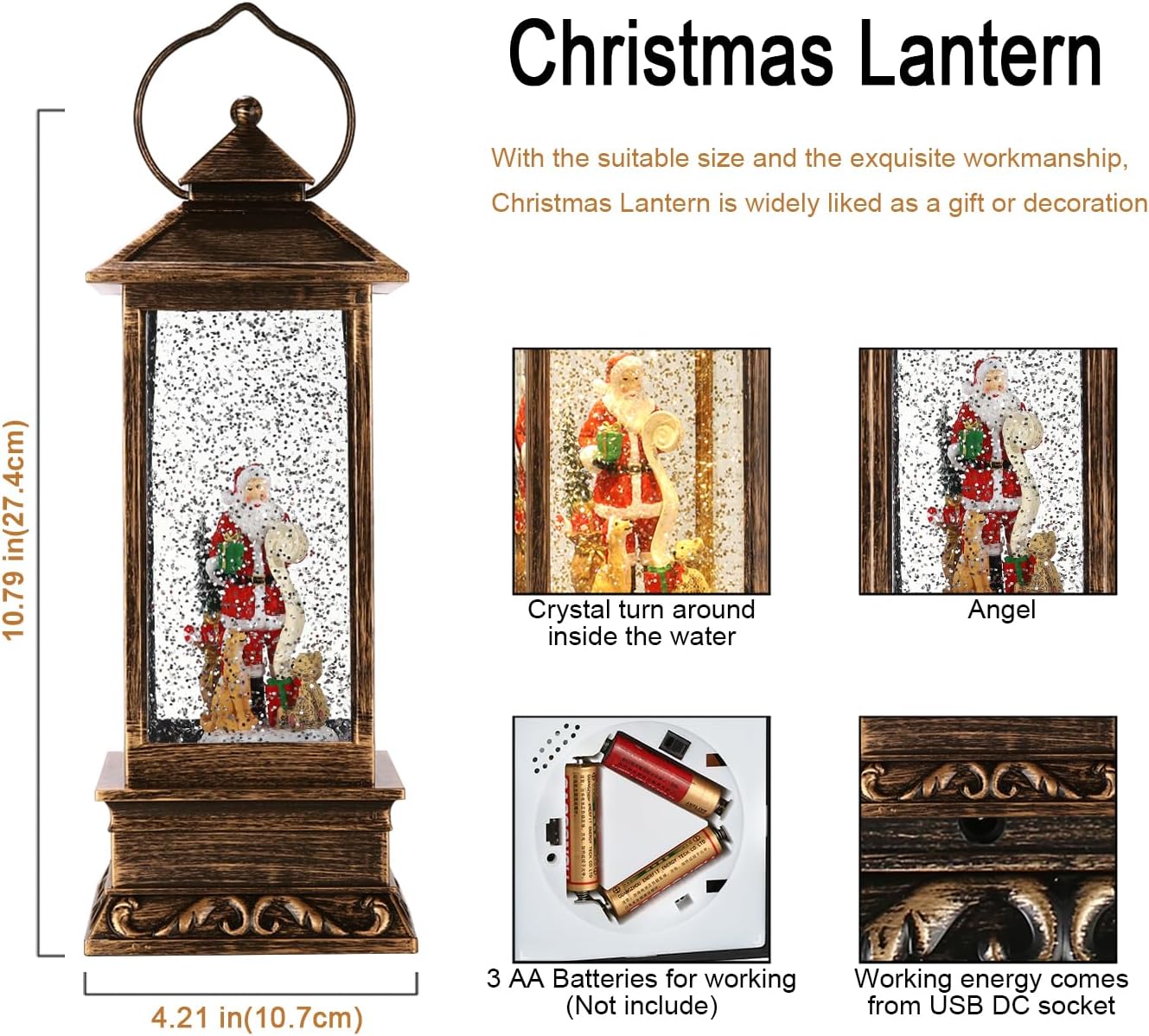 Christmas Decorations Snow Globe Christmas Lanterns Decoratives Christma Water Globe Christmas Decoration Home Water Lanterns Glittering with Music USB and Battery Operated Singing