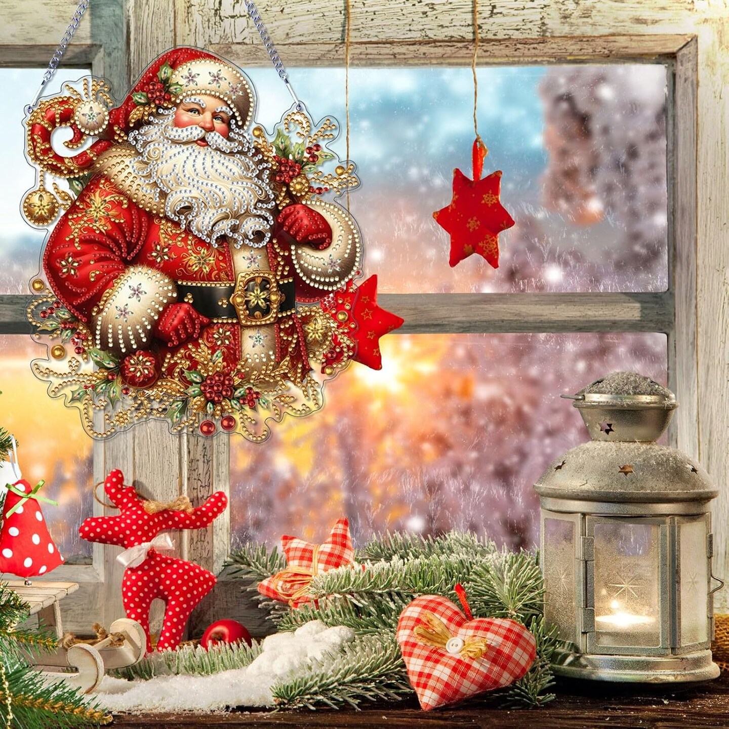 Christmas Diamond Art Hanging Kits for Adults(Santa Claus-01)
