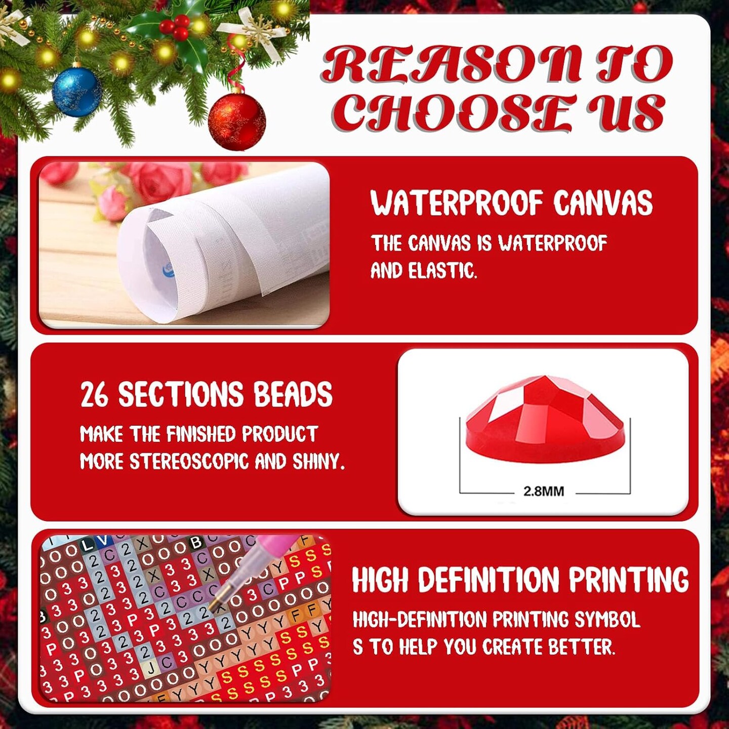 Christmas Diamond Art Kit for Adults – 5D Round Full Drill Gem Art (12x16 Inches)