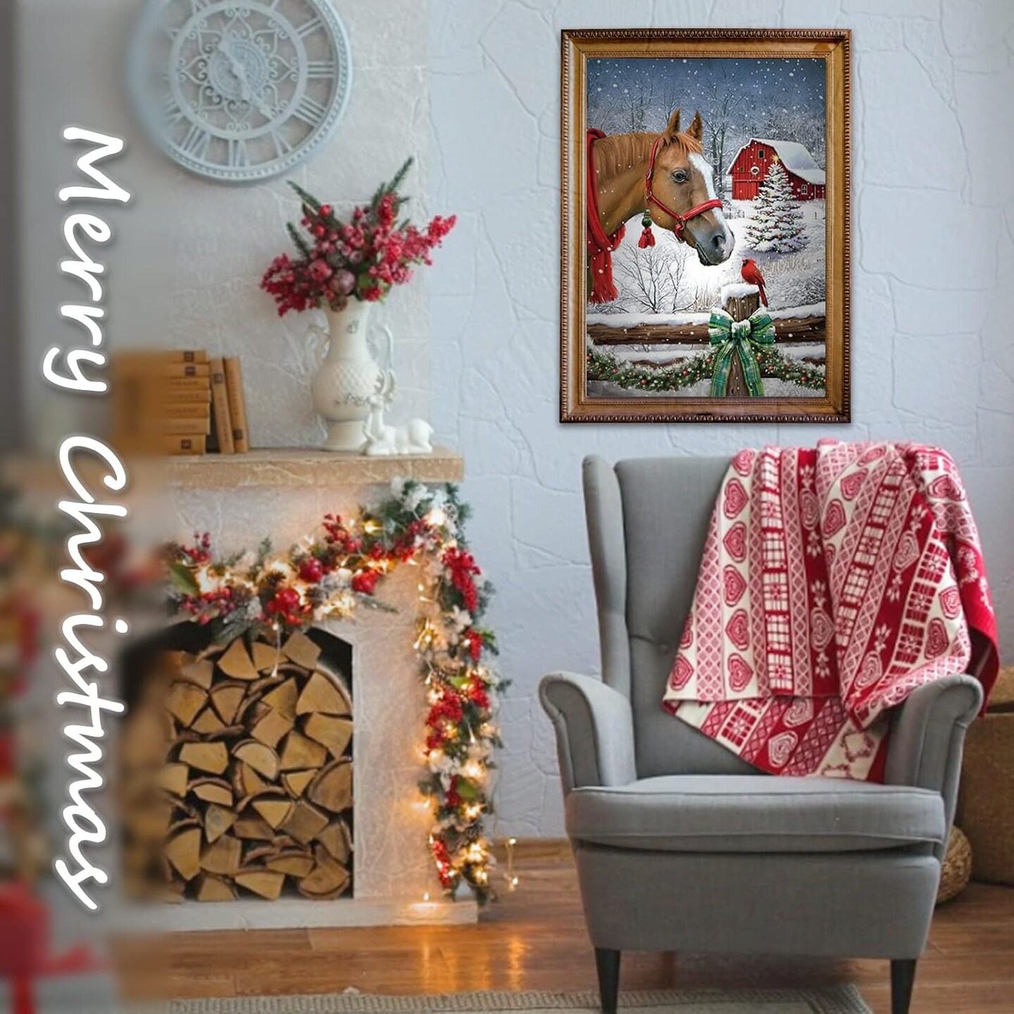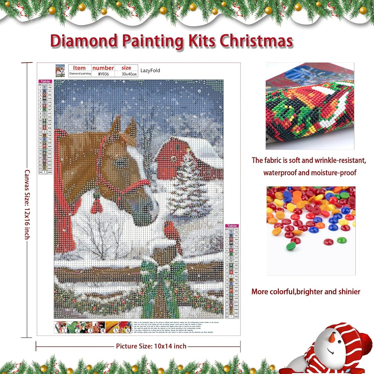 Christmas Diamond Painting Kits,Christmas Bird Horse 5D DIY Diamond Painting Kits,Full Diamond Round Diamond Painting Beginners for Home Wall Decor and Craft Gifts(12 X 16 Inch)