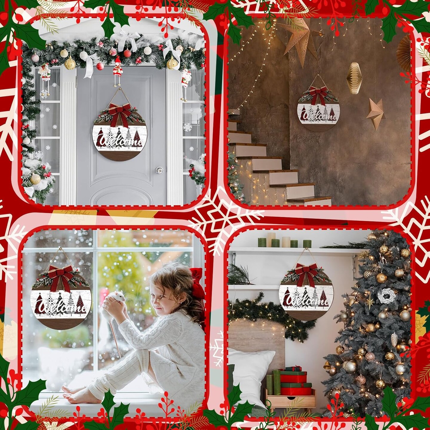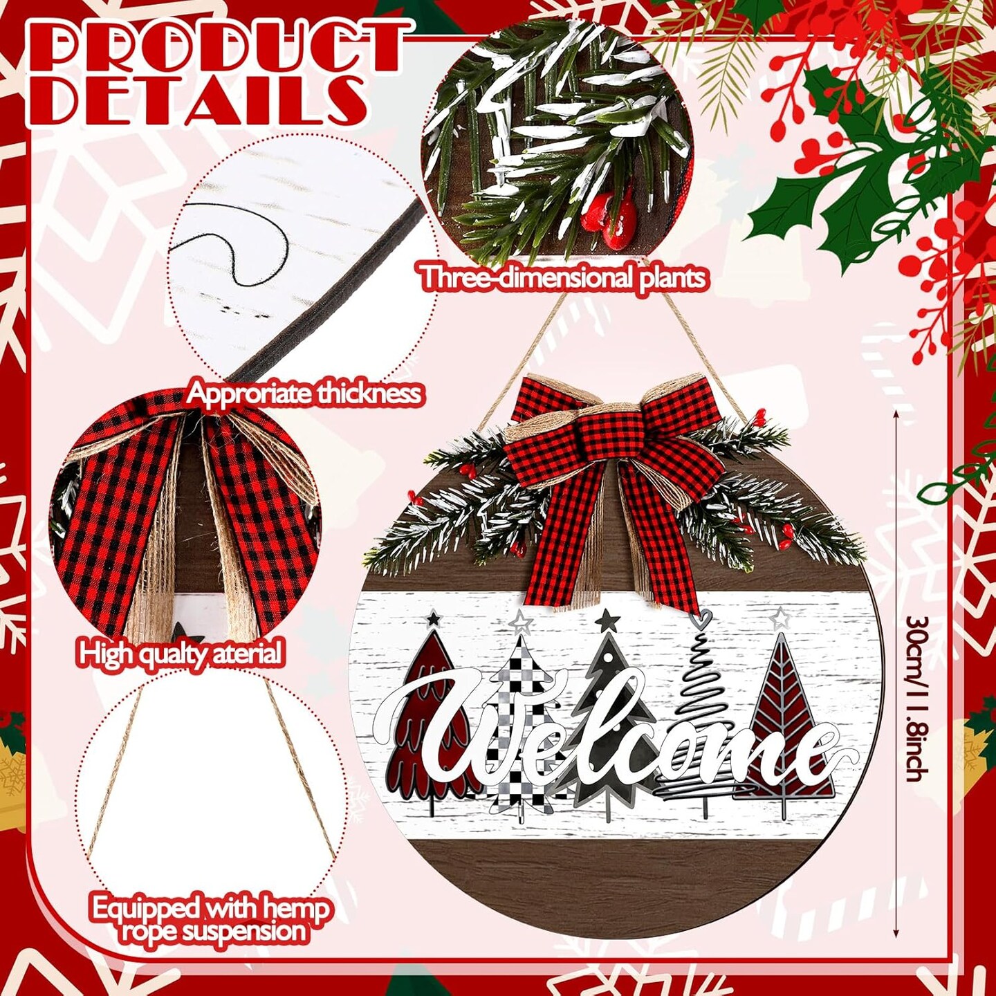 Christmas Door Wreath Merry Christmas Welcome Hanging Wall Sign - 11.8'' (Novel)