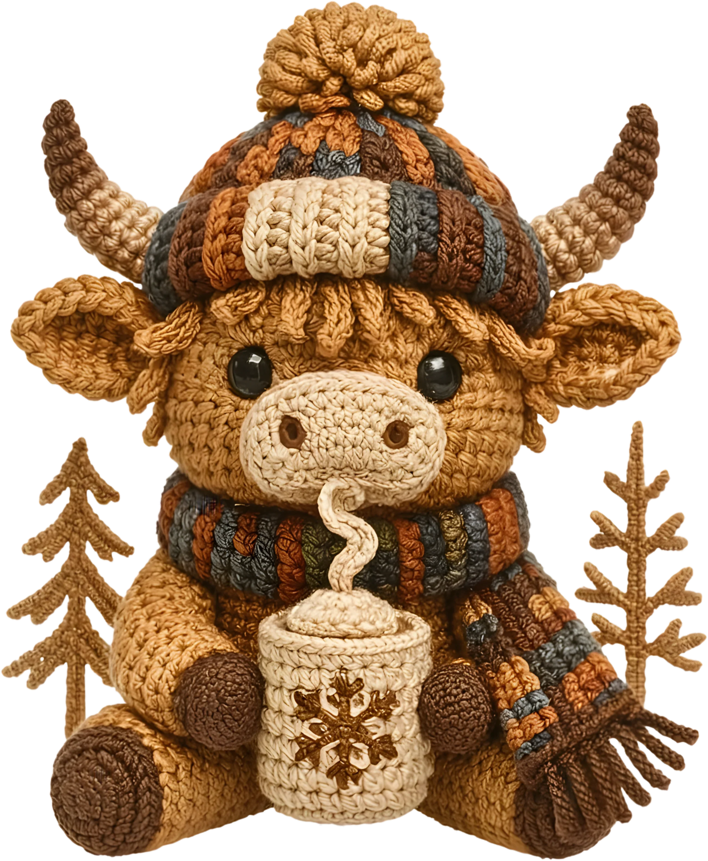 Christmas DTF Transfer - Highland Cow Hot Cocoa Faux Knit Ready Press