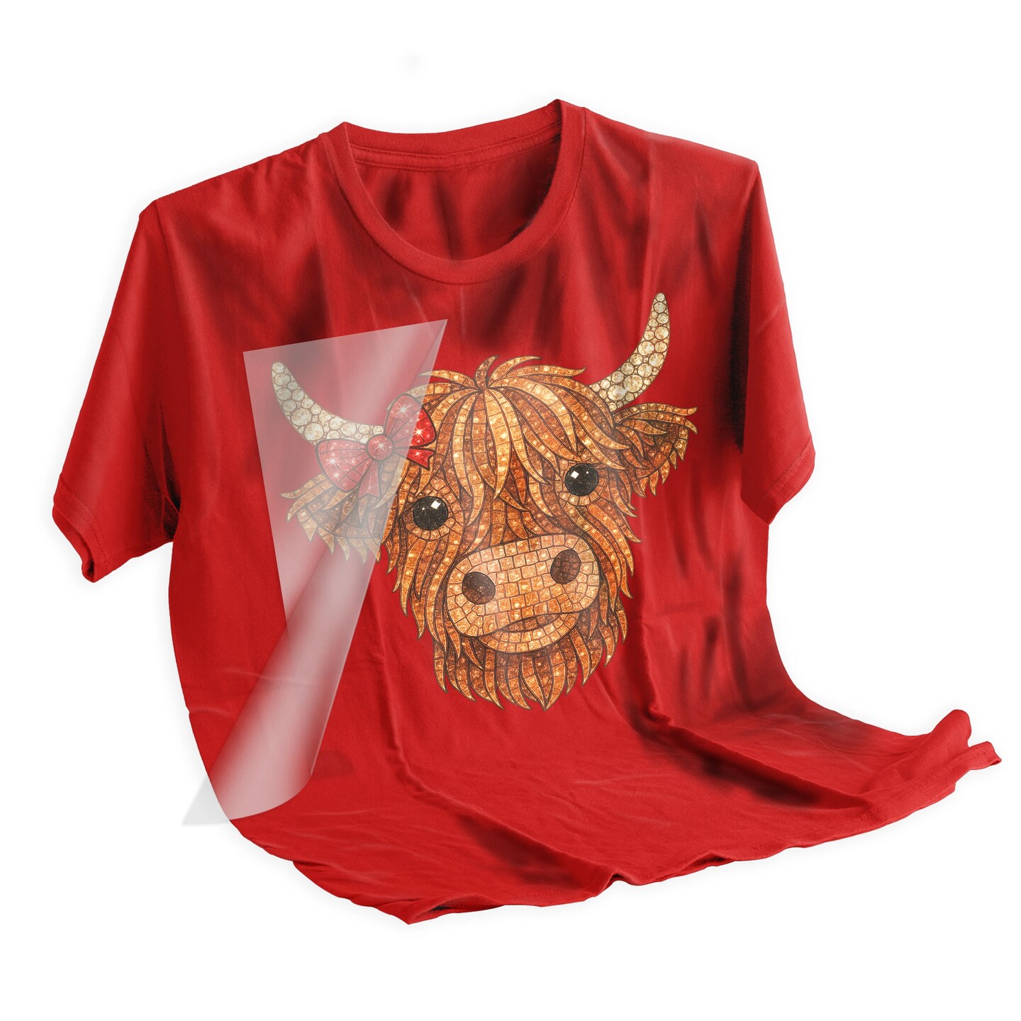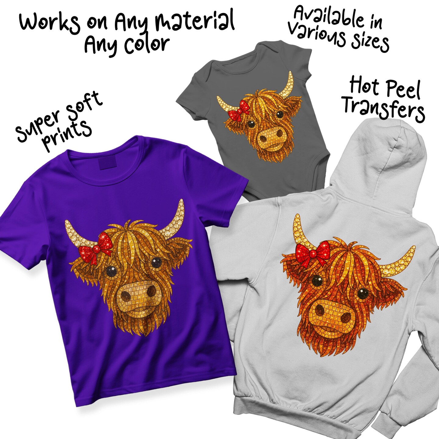 Christmas DTF Transfer - Highland Cow Red Bow Ready to Press