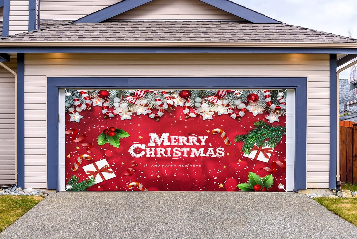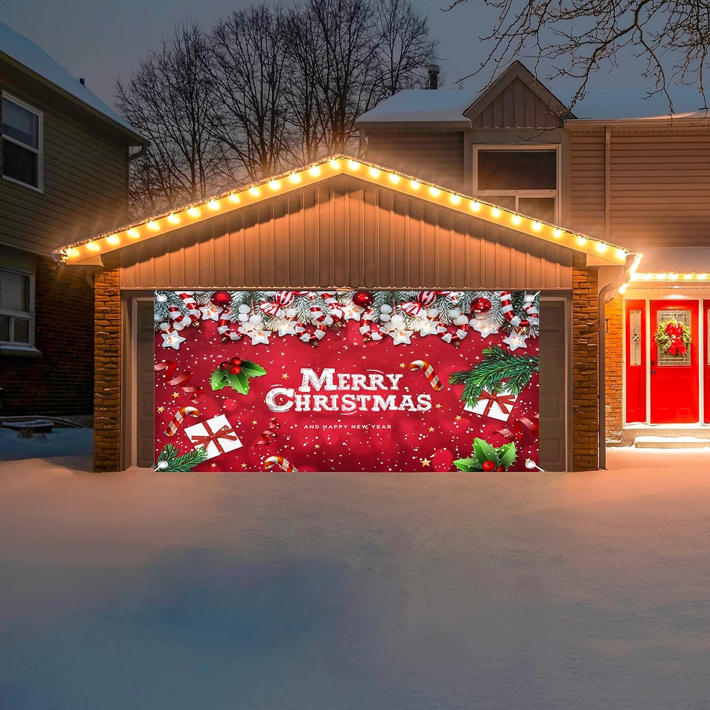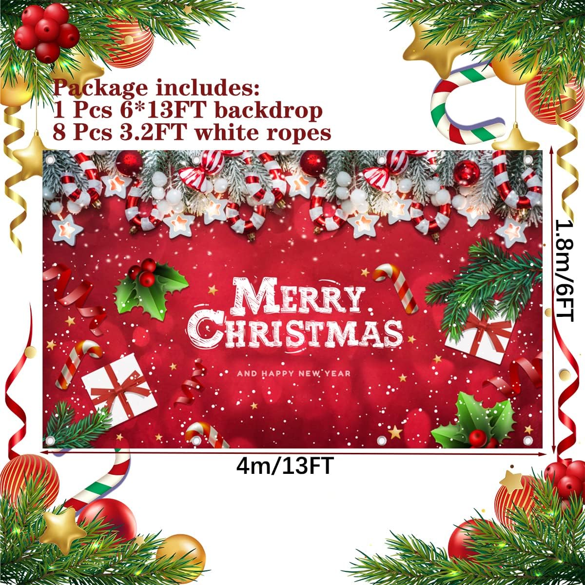 Christmas Garage Door Banner Decoration Large Christmas Garage Cover for Indoor Outdoor Holiday Party Supplies, Red Ornaments Backdrop Sign 6X13 FT
