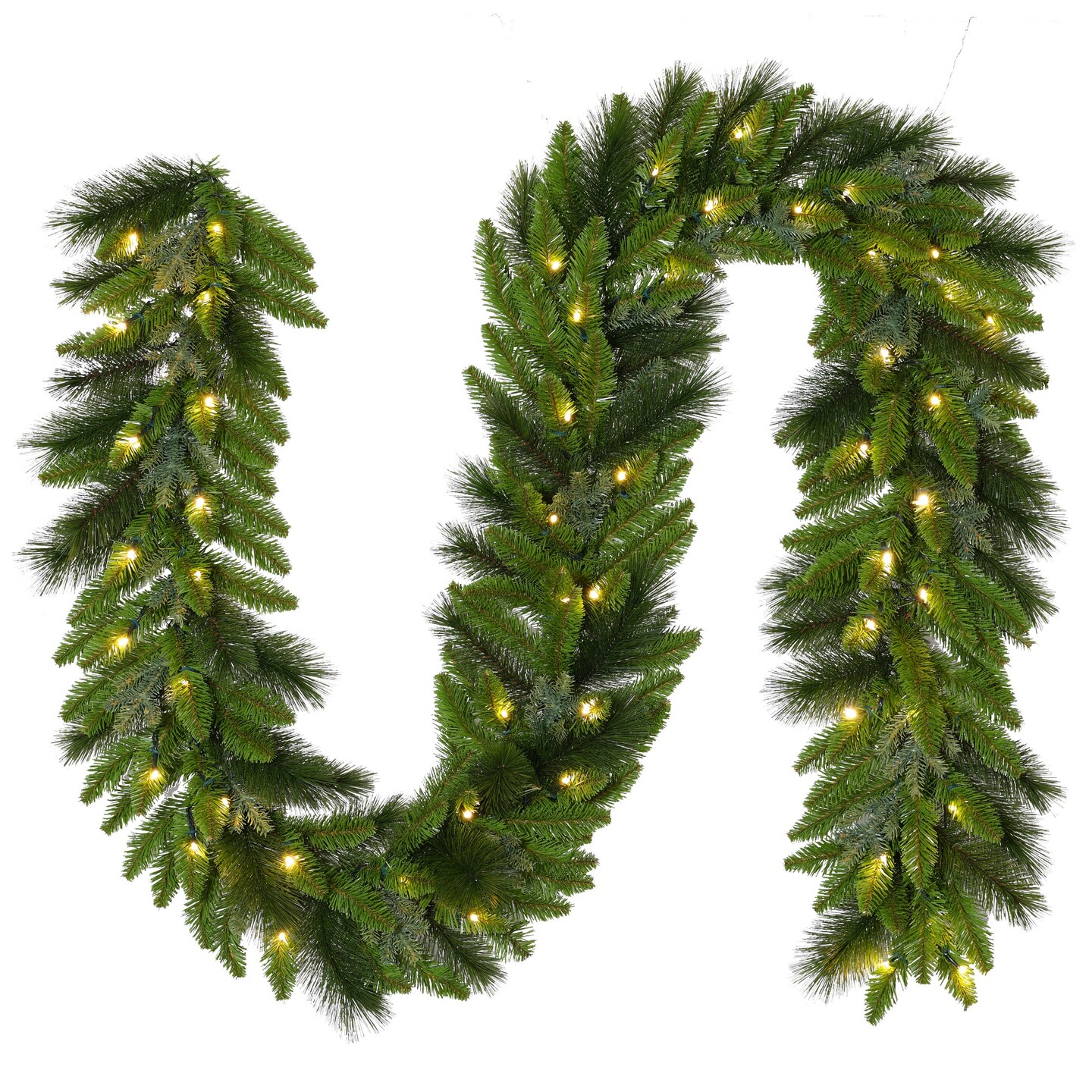Christmas Garland 9' x 12" Pre-lit with LED Clear Lights - Battery Operated - Artificial Fraser