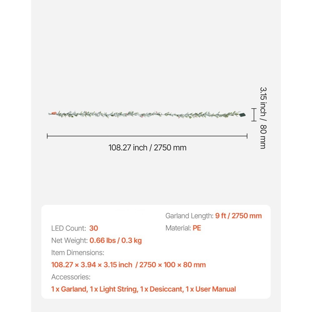 Christmas Garland with Lights Faux Greenery Olive Leaves and Berries for Mantel Decor