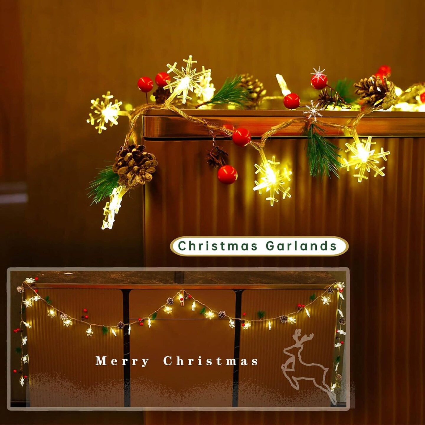 Christmas Garland with Snowflake Lights, 30 Led 10ft Battery Operated