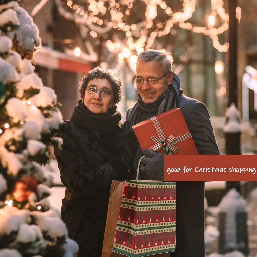 Christmas Gift Bags, 24 Pieces Medium Christmas Kraft Paper Bags with Handle