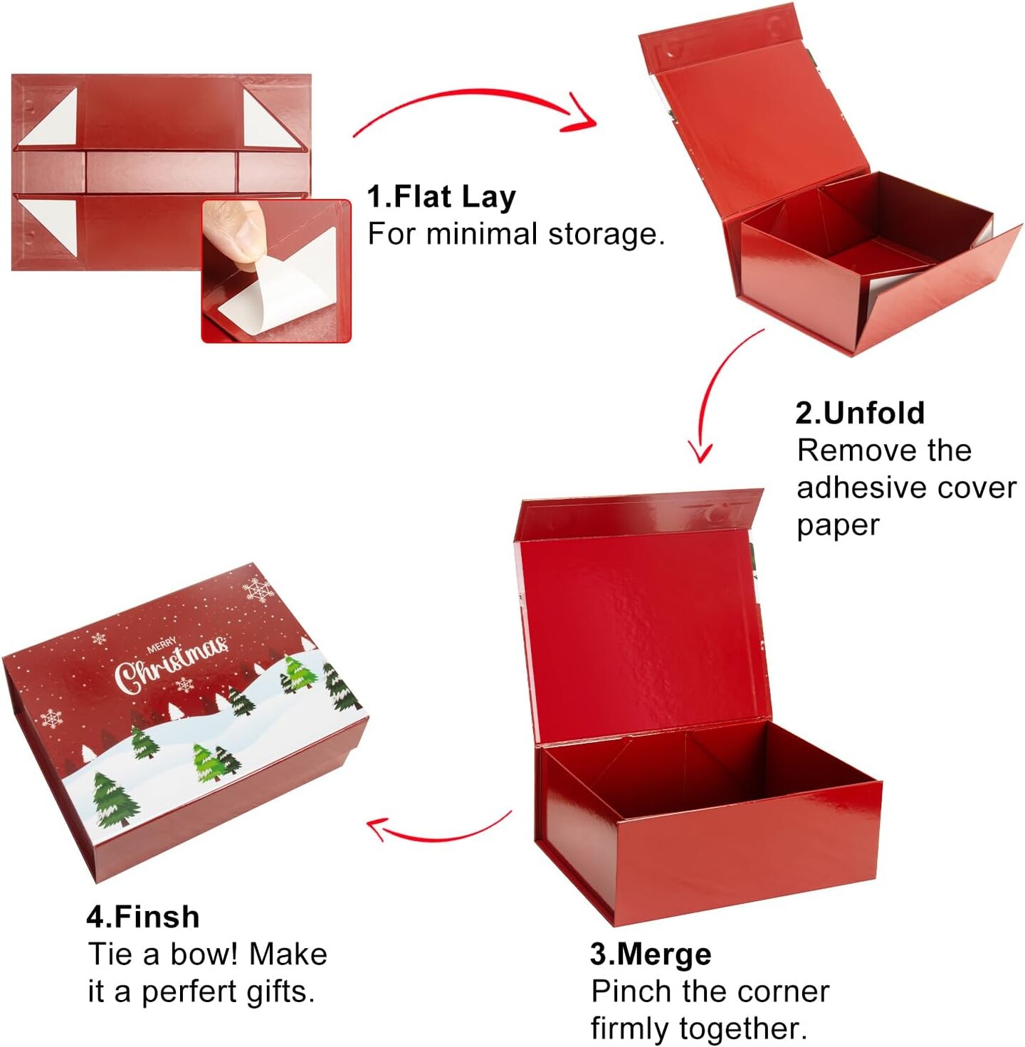 Christmas Gift Boxes with Lids, 9x7x3.5 Inches Luxury Xmas Eve Gift Box, Collapsible Red Gift Boxes with Magnetic Closure for Presents Wrapping Gifts