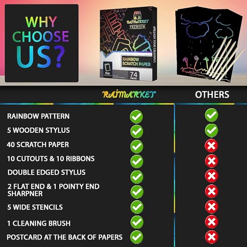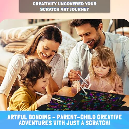 Christmas Gifts for Kids 74 Pieces, Scratch Art for Kids, Arts and Crafts for Kids, Rainbow Scratch Paper Art Set for Girl Birthday Gifts, 4-6 Christmas Girl Gifts Unicorn Toys