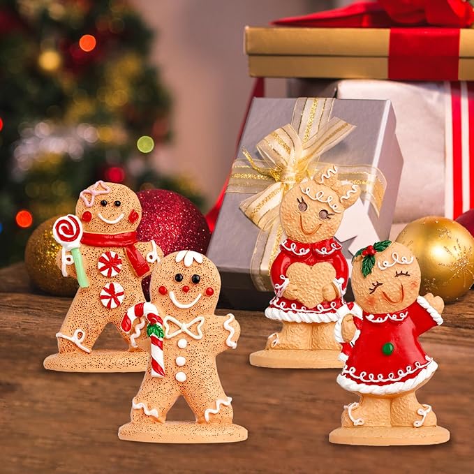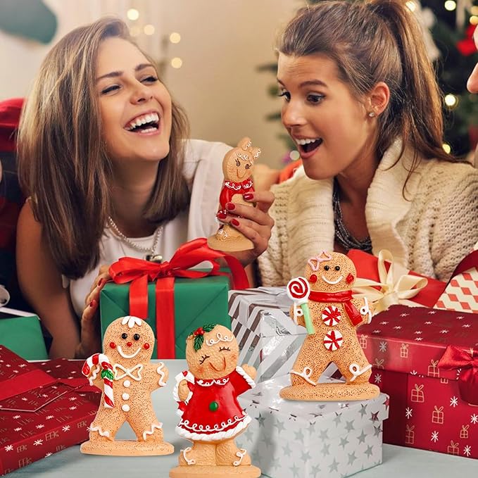 Christmas Gingerbread Man Ornaments, Resin Gingerbread Figurines Ornaments, Xmas Decor for Christmas Decoration Gifts