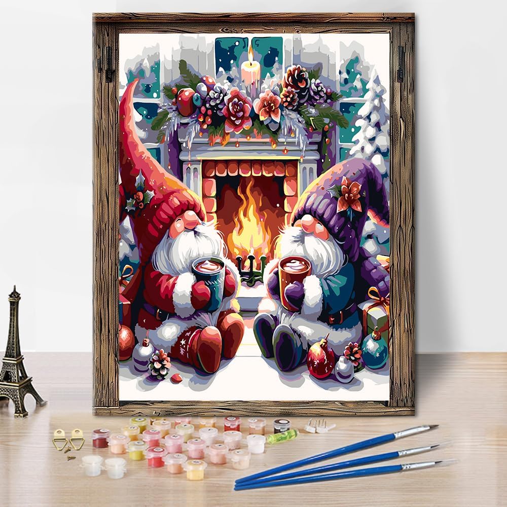 Christmas Gnome Paint by Number for Adults - Gnome Paint by Number, DIY HD Canvas Acrylic Painting Christmas Paint by Number, Perfect for Home Wall Decoration and Holiday Gifts 16X20Inch
