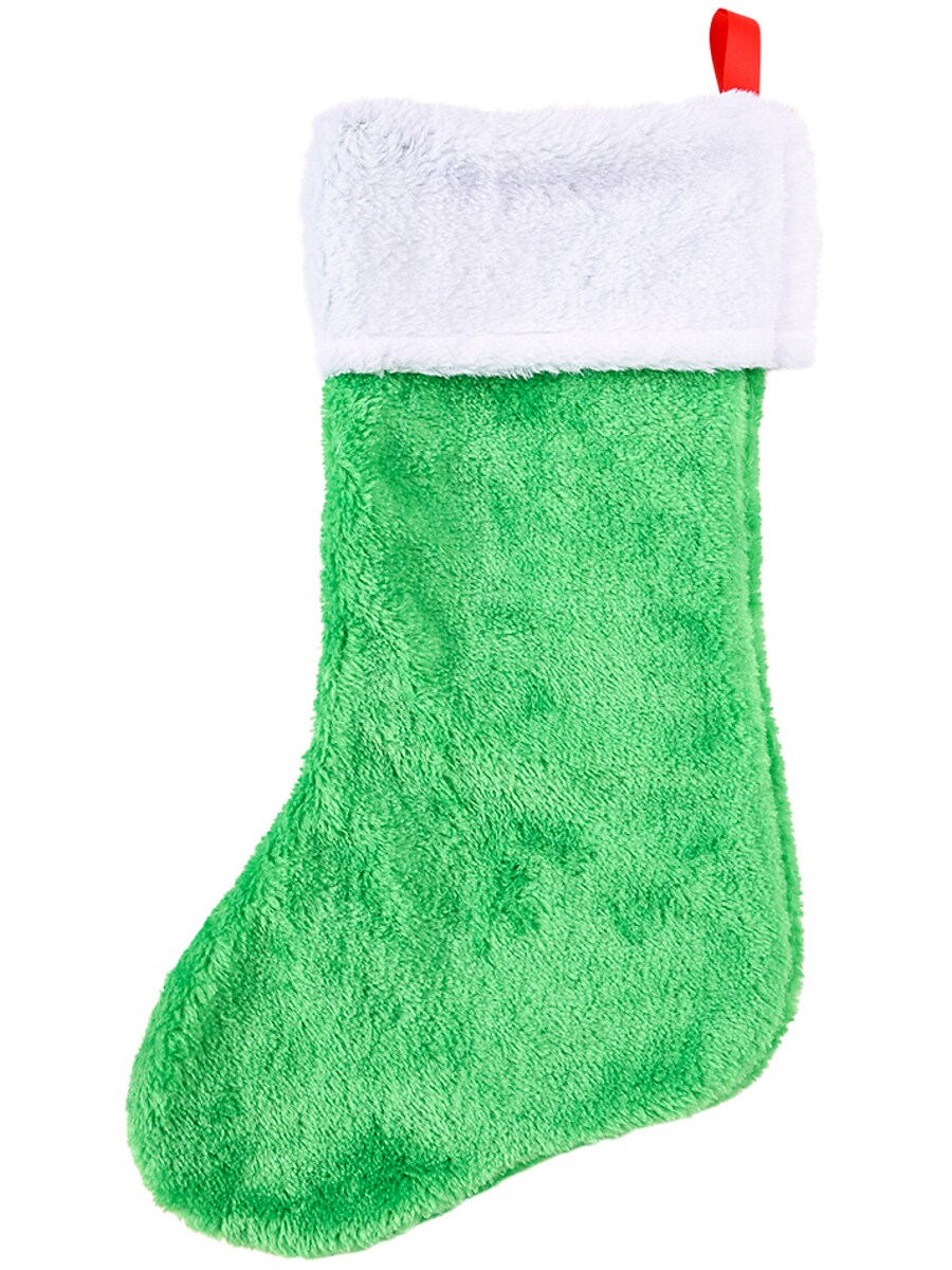 Christmas Green Plush Faux Fur Trim 16" Classic Stocking