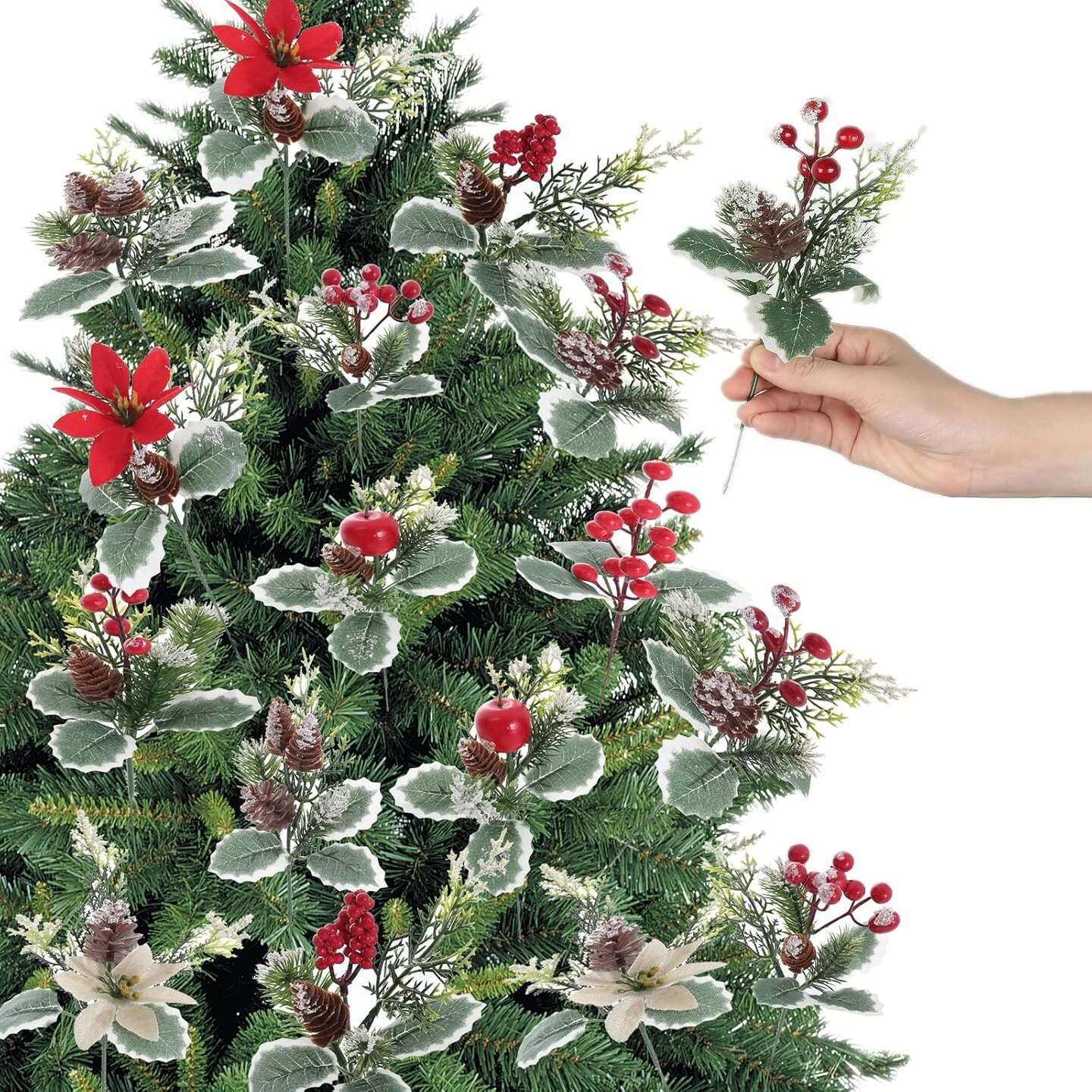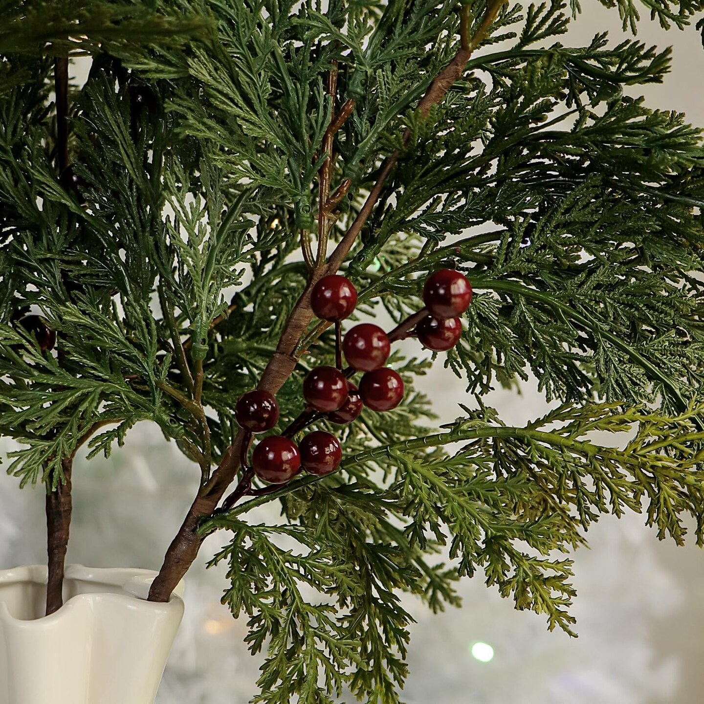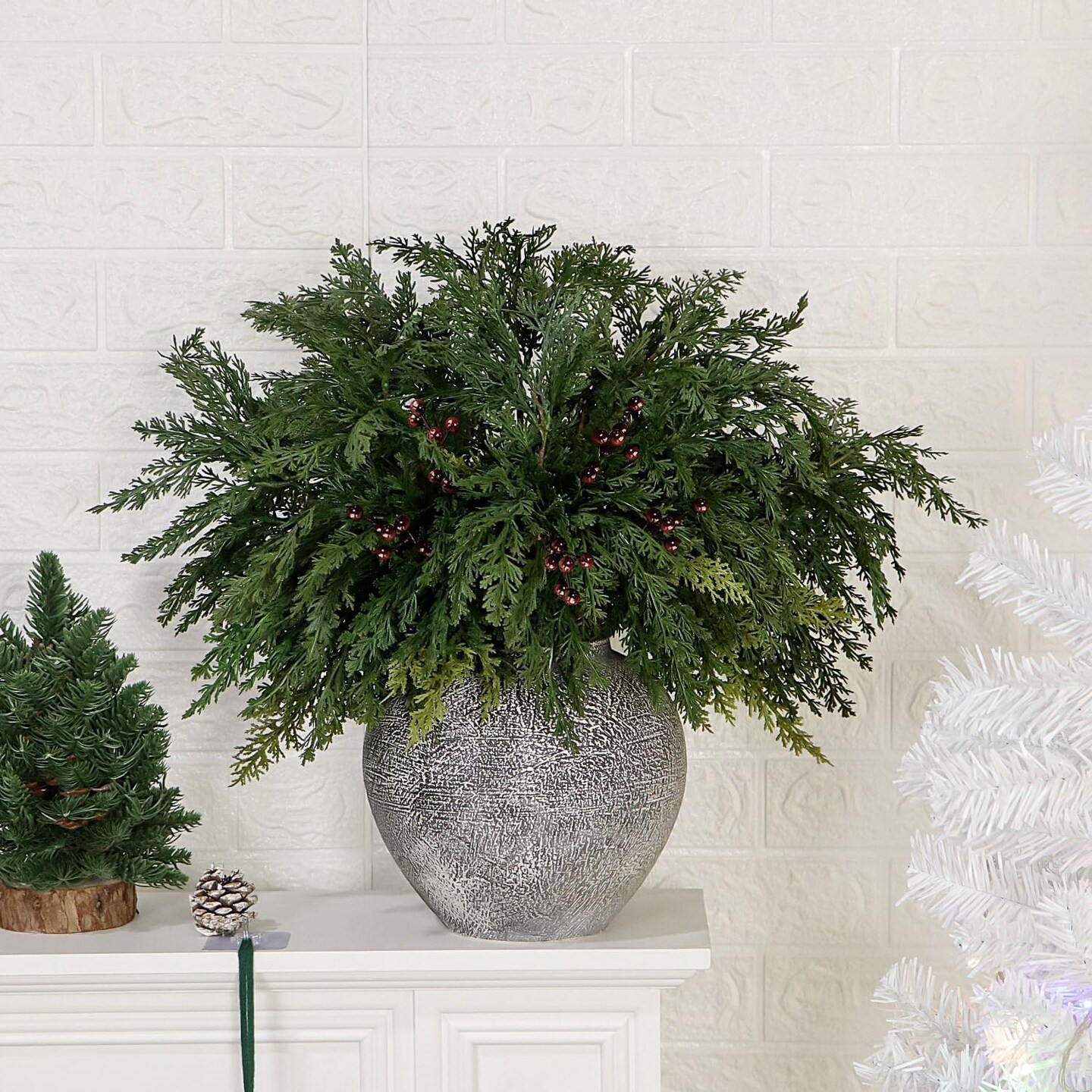 Christmas Greenery Stems with Red Berries Artificial Cedar Branches (Green) 2"D x 3"W x 3"H