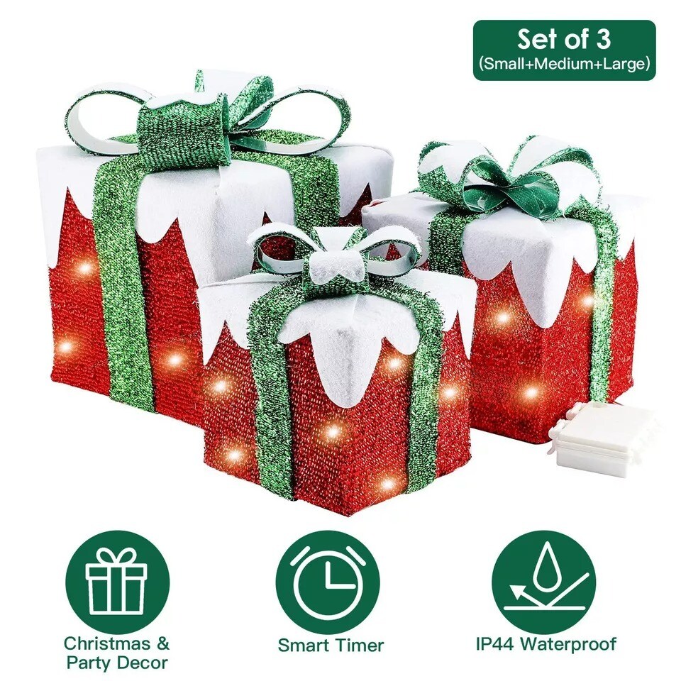 Christmas Lighted Gift Boxes Set of 3 Indoor Outdoor Home Yard Party Decoration