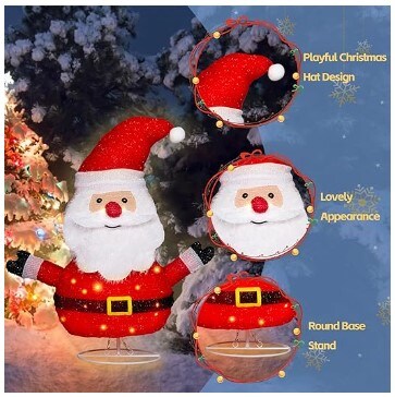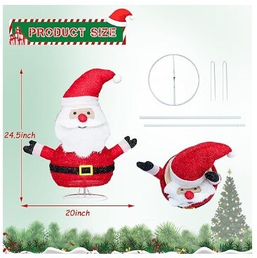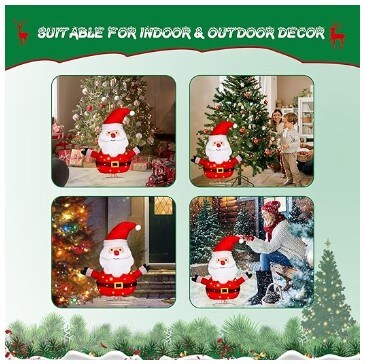 Christmas Lighted Santa Claus Displays, Light Up Collapsible Santa Pre Lit Pop Up Santa Claus Christmas Decorations for Indoor Outdoor Garden Yard Lawn Holiday Party Decor