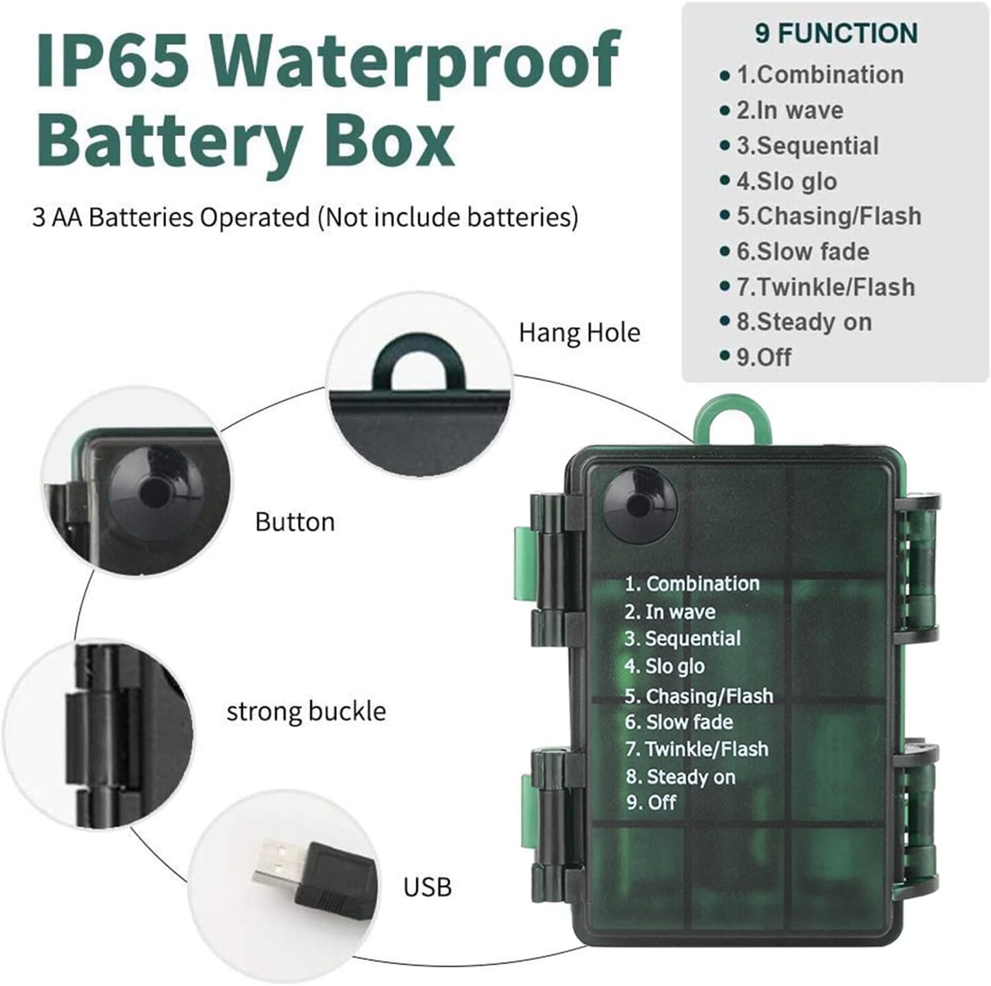 Christmas Lights 33ft 100 LED Battery String Lights with Timer Memory Function USB or Battery Powered Waterproof String Lights for Indoor Outdoor Decoration (Warm White)