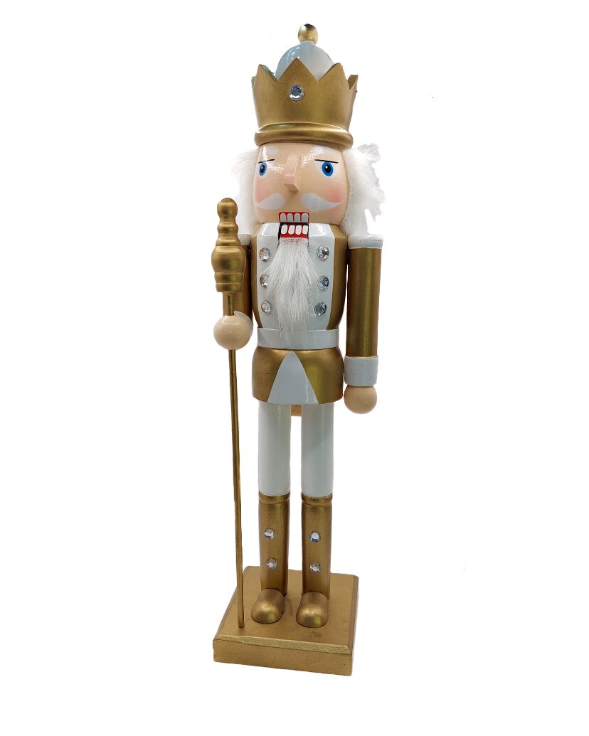 Christmas Nutcracker the Staffbearer. Wizardi Classic Wooden Festive Decoration F07M14-45-N01315B