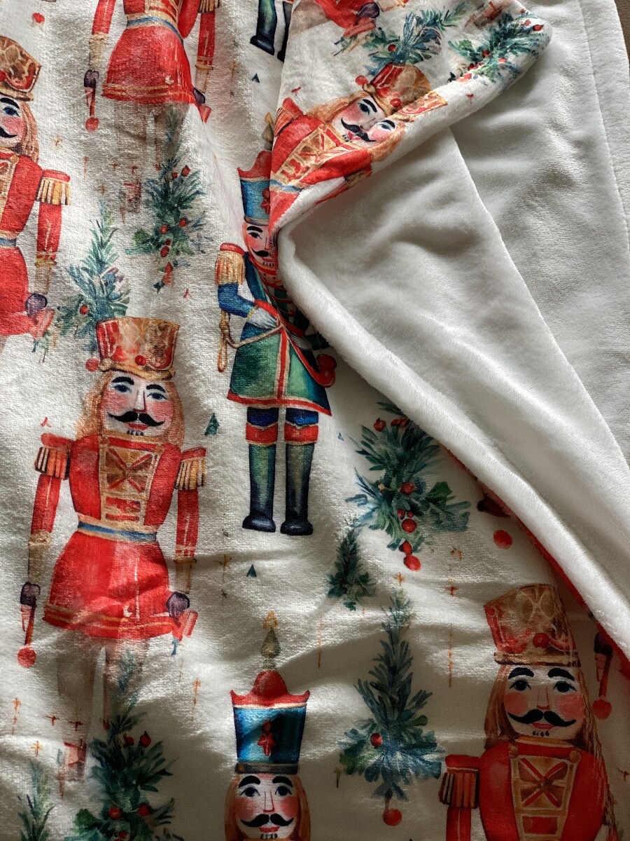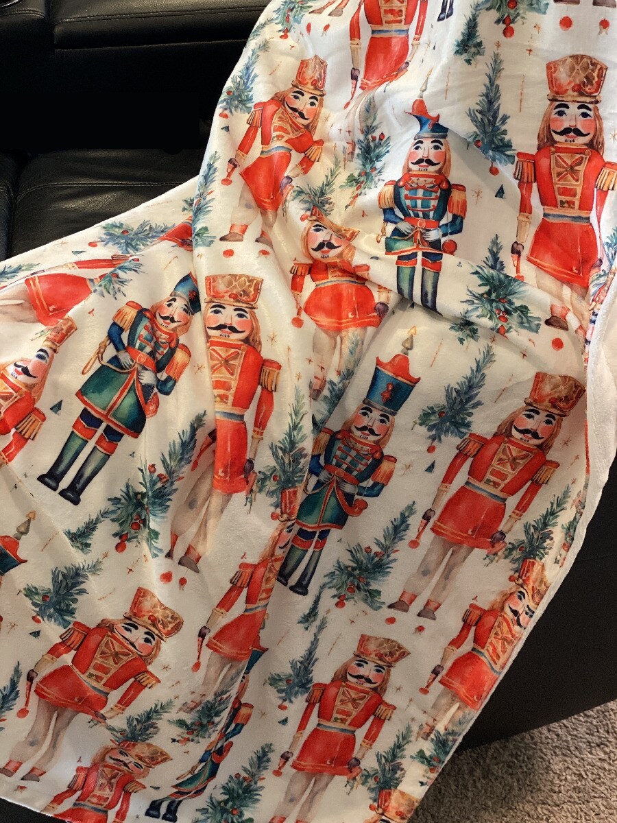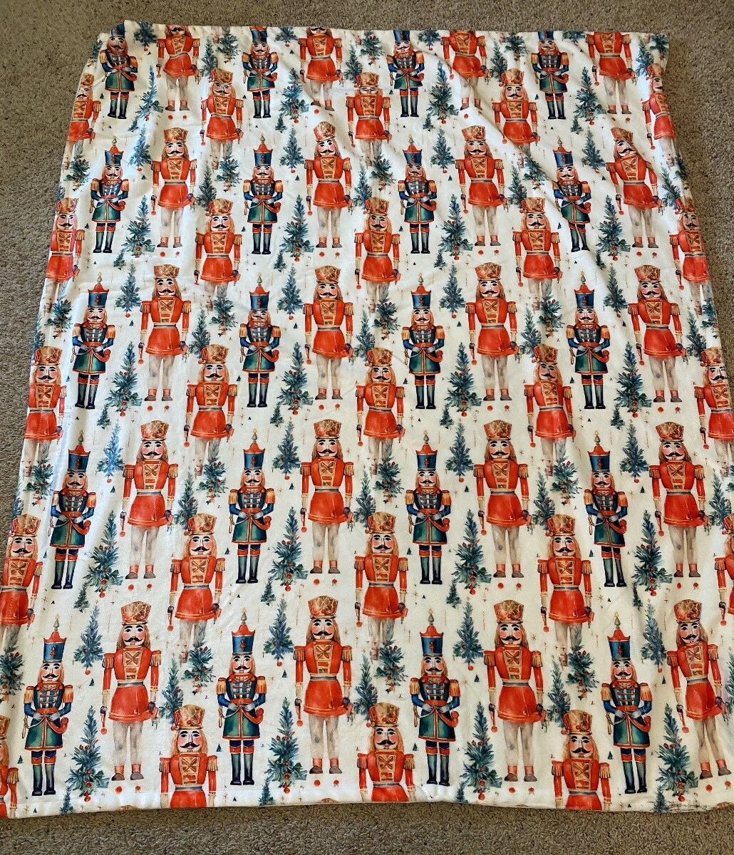 Christmas Nutcrackers Cream Plush Throw Blanket
